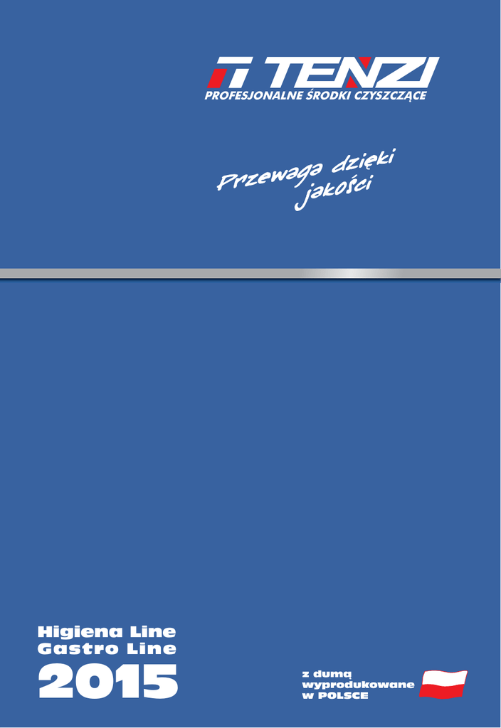 Higiena Line Gastro Line 2015 z dumą wyprodukowane w POLSCE poznaj jakość oszczędność przy stosowaniu koncentratów 10l roztworu roboczego tylko Ronal 1,43 zł 10l roztworu roboczego tylko 1,05 zł 10l roztworu roboczego tylko 0,21 zł 10l roztworu roboczego tylko 0,20 zł Doskonały produkt do czyszczenia uporczywych zabrudzeń z różnych powierzchni, szczególnie polecany do zmywarek posadzkowych. SuperGreen Specjal NF Wysoce wydajny produkt do czyszczenia zabrudzeń w halach przeładunkowych, produkcyjnych, warsztatach, polecany do zmywarek do posadzek. TopEfekt Oranż Alkoholowy produkt o przyjemnym zapachu do pielęgnacji wszelkich posadzek, szybko odparowuje nie pozostawiając smug, idealny do mycia ręcznego i maszynowego. TopEfekt Normal Preparat do codziennego mycia często brudzących się posadzek, produkt o przyjemnym zapachu cytryny. Istniejemy od 1999 roku. W nowej siedzibie pracujemy od 2013 roku. Dział Szkoleniowy Dział Handlowy Dział Produkcyjny Dział Technologiczny to 4 nowoczesne, w pełni wyposażone sale wykładowe. Szkolenia prowadzone są w 3 językach. to miejsce nieustannej pracy nad atrakcyjnymi ofertami i rabatami. to sztab fachowców dbających o wysoką jakość wytwarzanych produktów. wciąż udoskonala formulacje, zapachy oraz jakość preparatów. Firma Tenzi jest polskim producentem wszystkich preparatów zawartych w ofercie, opartych na własnych formulacjach i recepturach produktów. Firma Tenzi bierze pełną odpowiedzialność za treść oraz za skuteczność działania oryginalnych preparatów Tenzi Sp. z o.o. Z dumą wyprodukowane w POLSCE zamów bezpłatny katalog 91 311 97 77 [email protected] doradztwo w zakresie szkoleń, doboru i zastosowania produktów 601 833 022 informacje handlowe 91 311 97 77 [email protected] tenzi.eu adres Tenzi Sp. z o.o. Skarbimierzyce 20 72-002 Dołuje k/Szczecina Cennik publikowany jest w celu informacyjnym i nie stanowi oferty handlowej. W celu uzyskania najbardziej aktualnych informacji prosimy o kontakt. SPIS TREŚCI Higiena Line Posadzki - doczyszczanie silnych zabrudzeń • • • • • • • TopEfekt®STR Ronal Ronal Clan Super Green Specjal NF GresKam Top Perfekt APC OUT Higiena Line doczyszczanie niekonserwowanych posadzek elastycznych i żywicznych ............................................................................................14 doczyszczanie niekonserwowanych posadzek kamiennych, betonowych np. lastrico ..........................................................................14 usuwanie grafitu, sadzy i tłustego brudu z posadzek twardych ..........................................................................................................14 doczyszczanie i bieżące mycie posadzek w warsztatach ......................................................................................................................15 doczyszczanie płytek gresowych i granitogresowych ...........................................................................................................................15 doczyszczanie posadzek w przemyśle spożywczym .............................................................................................................................15 czyszczenie powierzchni zewnętrznych, silne zanieczyszczenia smoliste i inne, uniwersalny ..............................................................16 Higiena Line • TopEfekt® Sop • TopEfekt® Contra codzienne zmywanie i pielęgnacja posadzek (na mydłach) ................................................................................................................16 doczyszczanie posadzek w sklepach wielkopowierzchniowych ............................................................................................................16 Higiena Line • TopEfekt® Total usuwanie starych powłok woskowych, akrylowych, poliuretanowych z posadzek delikatnych, wodoodpornych .................................17 Higiena Line NOWOŚĆ • • • • • TopEfekt® San TopEfekt® San Extra TopEfekt ® Kan UniPro ProStone konserwacja posadzek – woskowy, uniwersalny..................................................................................................................................17 konserwacja posadzek elastycznych – woskowy .................................................................................................................................17 konserwacja posadzek – akrylowy, specjalistyczny..............................................................................................................................18 konserwacja posadzek – specjalistyczny, poliuretanowy .....................................................................................................................18 impregnacja powierzchni kamiennych zewnętrznych i wewnętrznych.................................................................................................18 Higiena Line • Top Efekt • TopEfekt® Extra • TopEfekt® Diam • • • • • • • • • TopEfekt® Normal DeKam TopEfekt® Oranż TopEfekt® Citro TopEfekt® Exotic TopEfekt® Zero TopEfekt® Perfume TopEfekt® Perfume TopEfekt® Perfume www.tenzi.eu mycie i pielęgnacja posadzek chłonnych oraz konserwowanych..........................................................................................................19 zmywanie i pielęgnacja posadzek elastycznych, półmatowych oraz błyszczących ..............................................................................19 zmywanie i pielęgnacja posadzek konserwowanych i niekonserwowawnych, własności antypoślizgowe, antyrefleksyjne i antystatyczne........................................................................................................................................................................................19 codzienne zmywanie posadzek szybko i często brudzących się .................................................................................