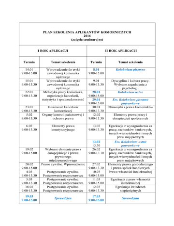 PLAN SZKOLENIA APLIKANTÓW KOMORNICZYCH 2016 (zajęcia