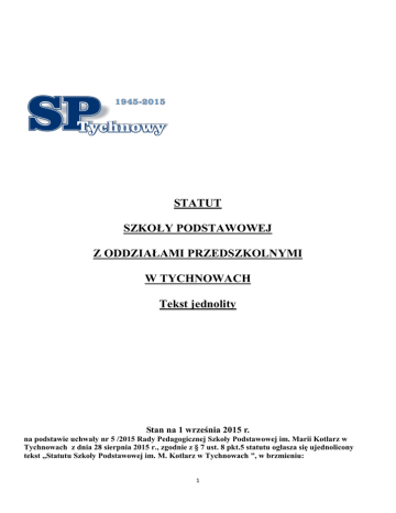 tekst „Statutu Szkoły Podstawowej im. M. Kotlarz w Tychnowach ”, w brzmieniu: