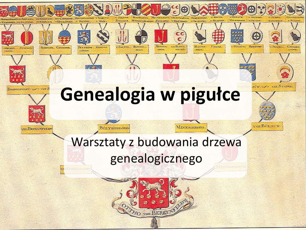 Genealogia w pigułce Warsztaty z budowania drzewa genealogicznego GENEALOGIA • Jedna z nauk pomocniczych historii, zajmująca się badaniem więzi rodzinnych między ludźmi na bazie zachodzącego między nimi pokrewieństwa i powinowactwa. PODSTAWA GENEALOGII • Podstawą genealogii jest istnienie różnie nazywanych więzi rodzinnych .Stosunki genealogiczne pomiędzy osobami co do zasady mają charakter biologiczny (genetyczny, naturalny, faktyczny). Na tej podstawie powszechnie przyjmuje się, że źródłem więzów krwi jest filiacja rozumiana jako pochodzenie zstępnych dzieci od pary wstępnych rodziców. • Rodzinę tworzą również osoby związane poprzez koicję, tj. związek (małżeński lub nieślubny) kobiety i mężczyzny celem posiadania potomstwa. PODSTAWA GENEALOGII • Prawnym odpowiednikiem genealogicznej filiacji i koicji są odpowiednio pokrewieństwo zachodzące między osobami posiadającymi co najmniej jednego wspólnego przodka oraz powinowactwo zachodzące między krewnymi jednego małżonka a drugim małżonkiem. Pokrewieństwo i powinowactwo oblicza się w stopniach i liniach. Od czego zacząć? • Naszkicuj proste drzewo genealogiczne. Pozwoli Ci to zorientować się co wiesz i jednocześnie pokaże kogo z rodziny należy na tę okoliczność wypytać. Od czego zacząć? Jeśli posługujesz się najprostszym schematem drzewa pamiętaj, że jest kilka ustalonych symboli: • małżeństwo łączymy znakiem „=”, • rozwód określamy przez przekreślenie tego znaku, • śmierć jakiegoś członka rodziny przez krzyżyk przy jego imieniu i nazwisku, • ważne informacje to: daty urodzin i śmierci wszystkich członków rodu, oraz ich partnerów życiowych i dzieci, • strzałka w dół wyprowadzona od obu rodziców oznacza, że osoba określona tą strzałką jest potomkiem, • jeśli to możliwe, warto zachować chronologię urodzin i od prawej strony umieszczać najstarsze dzieci, aż do coraz młodszych. Relacje rodzeństwa określamy przez pojedynczą poziomą linię. Od czego zacząć? • Podziel drzewo na fragmenty. Aby uprościć gromadzenie danych możesz podzielić rodzinę wielopoleniową na rodziny monogamiczne składające się z pary rodziców biologicznych oraz ich dzieci. Od czego zacząć? • Jeżeli masz komputer i chcesz pracować z jego pomocą istnieje wiele programów genealogicznych - możesz swoje dane wprowadzać bezpośrednio do formularzy w tych programach. Np.. My Family Tree Od czego zacząć? • Spisz wszelkie dodatkowe informacje nie ujęte w arkuszu rodziny. daty i miejsca wydarzeń (gdzie i kiedy urodzony, ochrzczony, szkoła, ślub, miejsce zamieszkania, data zgonu, gdzie pochowany – cmentarz, kwatera, nr grobu, zdjęcie). Notuj też źródło informacji abyś kiedyś wiedział skąd (z jakich dokumentów) lub od kogo (z przekazu ustnego) informacja pochodzi. Od czego zacząć? • Odszukaj i przeanalizuj akty urodzenia/ chrztu/ ślubu/ śmierci, dowody osobiste, paszporty, umowy o pracę, akty własności/ zakupu/ sprzedaży, legitymacje szkolne/ służbowe/ ubezpieczeniowe/ inne, fotografie, wycinki artykułów, listy, pamiętniki i wszystkie inne. Od czego zacząć? • Rozmawiaj z rodziną. Zacznij od najbliższych i najstarszych, bo możesz nie zdążyć bezpowrotnie tracąc możliwość zdobycia bardzo wielu cennych informacji. • Zapisuj wszystkie informacje notując skąd pochodzą. Zbierz też adresy i telefony do kolejnych osób. Od czego zacząć? • Wpisz w www.google.pl swoje nazwisko, zarówno w formie męskiej jak i żeńskiej. Poszukaj witryn genealogicznych i sprawdź zamieszczone tam linki do innych stron Od czego zacząć? • Sprawdź dostępne bazy danych. Cennym źródłem informacji mogą okazać się dostępne w internecie bazy danych zawierające indeksy metrykalne. • Są to np. Geneteka, Pomorskie TG, Zabór pruski (Wielkie Księstwo Poznańskie). Koniec W prezentacji wykorzystano materiały ze stron • www.wikipedia.pl, http://commons.wikimedia.org • http://www.forgen.pl/forum/ • http://genealodzy.pl/