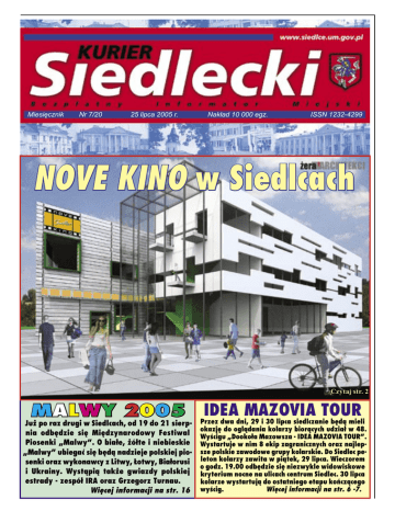 Miesięcznik Nr 7/20 25 lipca 2005 r. Nakład 10 000 egz. ISSN 1232-4299 NOVE KINO w Siedlcach Czytaj str. 2 MALWY 2005 Już po raz drugi w Siedlcach, od 19 do 21 sierpnia odbędzie się Międzynarodowy Festiwal Piosenki „Malwy”. O białe, żółte i niebieskie „Malwy” ubiegać się będą nadzieje polskiej piosenki oraz wykonawcy z Litwy, Łotwy, Białorusi i Ukrainy. Wystąpią także gwiazdy polskiej estrady - zespół IRA oraz Grzegorz Turnau. Więcej informacji na str. 16 IDEA MAZOVIA TOUR Przez dwa dni, 29 i 30 lipca siedlczanie będą mieli okazję do oglądania kolarzy biorących udział w 48. Wyścigu „Dookoła Mazowsza - IDEA MAZOVIA TOUR”. Wystartuje w nim 8 ekip zagranicznych oraz najlepsze polskie zawodowe grupy kolarskie. Do Siedlec peleton kolarzy zawita w piątek, 29 lipca. Wieczorem o godz. 19.00 odbędzie się niezwykle widowiskowe kryterium nocne na ulicach centrum Siedlec. 30 lipca kolarze wystartują do ostatniego etapu kończącego wyścig. Więcej informacji na str. 6 -7. WYDARZENIA BAUMANN-MOSTOSTAL z POLIMEX-u do ALTRADA Siedlecka perełka w silnej Grupie Baumann Mostostal spółka-córka siedleckiego Mostostalu za kilkanaście milionów złotych stała się własnością francuskiej grupy kapitałowej ALTRAD. W styczniu tego roku Polimex Mostostal S.A. podpisał umowę sprzedaży 52% udziałów w spółce Baumann - Mostostal. - To były bardzo trudne negocjacje - przyznaje Aleksander Jonek wiceprezes Polimex - Mostostal. - Bardzo ciężko jest sprzedawać firmę, którą się stworzyło i budowało przez 9 lat. Ale jestem przekonany, że Altrad zapewni jej dobrą przyszłość. Podobnego zdania jest prezes Baumann - Mostostal Mirosław Zwoliński. - To szansa na dalszy rozwój naszej firmy, a co za tym idzie tworzenie nowych miejsc pracy dla mieszkańców Siedlec. Wchodzimy na nowe rynki, otwiera się przed nami dostęp do nowych technologii, już teraz odczuwamy wzrost sprzedaży. Musieliśmy zatrudnić dodatkowych pracowników sezonowych i prawdopodobnie zostaną oni na stałe. Nowy właściciel już trzy lata temu kupił 48 % udziałów poprzez swoją niemiecką firmę Altrad-Baumann. Warunki zawieszające wejście umowy w życie zostały spełnione 30 czerwca. Z tej okazji gościł z wizytą w Siedlcach właściciel Grupy - Francuz, syryjskiego pochodzenia Mohed Altrad. Urodzony w plemieniu koczowniczym pustyni syryjskiej, Beduin o bosych stopach posiada dzisiaj drugą pod względem wielkości fortunę w regionie Languedoc-Roussillon we Francji z majątkiem sięgającym kilkadziesiąt milionów Euro. Spółka Altrad powstała w 1985 r. wraz z przejęciem renomowanego producenta rusztowań. Od tego czasu inwestowano w stały rozwój Grupy, co zaowocowało pozycją niekwestionowanego lidera w branży rusztowań w Europie. Altrad jest też wiodącą firmą na świecie w segmencie betoniarek. W skład grupy kapitałowej wchodzi 25 spółek, w tym 13 we Francji, 4 w Niemczech, jedna w Tunezji i 7 w różnych krajach Europy. Siedlecki Baumann- Mostostal jest drugą, po Spomaszu Białystok, polską spółką w Grupie Altrada. Imponująco przedstawiają się wyniki finansowe Grupy. Altrad na koniec 2004 roku zanotował zysk 2 KURIER SIEDLECKI go, głównie z powodu planów dotyczących rynków wschodnich. Transport ciężkich rusztowań jest kosztowny, a lokalizacja siedleckiej spółki idealna. Mohed Altrad podczas pobytu w Siedlcach spotkał się także z władzami Miasta i rozwiał niepokój prezydenta Mirosława Symanowicza co do dalszych planów odnośnie firmy. Inwestor zapewnił, że zainteresował się Baumannem także ze względu na barPrezydent Mirosław Symanowicz i Mohed dzo wysoką jakość proAltrad podczas rozmowy w Urzędzie Miasta dukcji oraz fachową kadrę i nie zamierza wprowadzać w wysokości 12 mln Euro, przy obrocie na poziomie 184 mln Euro. Plan na ko- znaczących zmian w jej zarządzaniu. Doniec bieżącego roku zakłada dalszy kil- wodem na to jest pozostawienie dotychczasowej nazwy spółki Baumann-Mokumilionowy wzrost zysków. Dlaczego zainteresował się Sie- stostal z dopiskiem Grupa Kapitałowa dlcami? Przyznaje, że już kilka lat Altrad. To wyjątek od żelaznej zasady temu chciał kupić Baumanna, ale wte- Altrada, który wraz z przejęciem firmy dy usłyszał - nie. W końcu dopiął swe- zmienia pierwszy człon jej nazwy. NOVE KINO już za rok w Siedlcach Doskonała współpraca z władzami Siedlec oraz szybkość i trafność decyzji zadecydowały o tym, że w przyszłym roku Siedlczanie będą mogli obejrzeć pierwszy seans filmowy w nowoczesnym, najwyższej klasy obiekcie kinowym. Jeszcze jesienią tego roku Instytucja Filmowa MAX FILM rozpocznie budowę czterosalowego kina. Zapowiedzieli to zgodnie Prezydent Siedlec, Wicemarszałek Województwa Mazowieckiego i Dyrektor Max Filmu, podczas specjalnie zwołanej konferencji prasowej. Przypomnijmy, że w lutym br. władze Siedlec przekazały Województwu Mazowieckiemu nieruchomość o wartości 1.350.714 zł, przy ulicy Wiszniewskiego z przeznaczeniem pod budowę kina. W przeciągu roku powstanie na niej oprócz budynku kina, który jest jedną z priorytetowych inwestycji MAX FILM-u, także powierzchnia biurowa oraz usługi towarzyszące handlowo-gastronomiczne. Koszt siedleckiej inwestycji wstępnie szacowany jest na około 12,5 mln zł. Nowe Kino w Siedlcach pomieści łącznie ponad 900 widzów. Znajdą się w nim sale na 243 i 312 osób oraz dwie na 177 osób. Wyposażone zostanie w najwyższej klasy sprzęt projekcyjny i aparaturę nagłaśniającą Dolby Digital. Obiekt będzie w pełni klimatyzowany. Dodatkową atrakcją mają być hiszpańskie fotele oraz podwójne kanapy w wybranych rzędach. Dodatkowo utworzona zostanie sala konferencyjna. Łącznie powierzchnia kinowa budynku wyniesie 1753 m2. Budynek przy ul. Wiszniewskiego ma się stać siedleckim centrum rekreacji. Kino, kawiarnia, restauracja, miejsce zabaw dla dzieci i ogród zimowy mają zapewnić mił