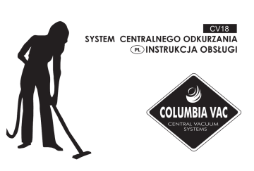 CV18 SYSTEM CENTRALNEGO ODKURZANIA PL INSTRUKCJA OBSŁUGI COLUMBIA VAC SYSTEMY CENTRALNEGO ODKURZANIA 1 Model 2 3 4 9 10 8 Obudowa stal nierdzewna Silnik 11 6 12 7 8. Wylot 9. Przełącznik trybu pracy 10. Lampka kontrolna 11. Tłumik 12. Gniazdo gospodarcze Odkurzacz wyposażony jest w dwustronny system podłączenia wlotu powietrza. Po podłączeniu odkurzacza do instalacji nieużywany wlot powinien być zaślepiony dołączoną do zestawu zaślepką. CV18 AMETEK (W) 1600 1200 Zasilanie Siła ssąca (AirWat) 25,5 Gniazdo gospodarcze 1800 230V ~ 50Hz 340 Podciśnienie KP Tak 510 625 30 32 Tak Tak Pojemność zbiornika (L) 20 20 20 Waga (kg) 7,6 9,6 9,8 Tłumik Tak Rozmiar (mm) 1. Otwór wentylacyjny - wlot 2. Otwór wentylacyjny - wylot 3. Przewód sterujący 4. Przewód zasilający 5. Wspornik ścienny 6. Wlot 7. Zbiornik CV16 hybrydowo cyklonowy Moc 5 CV12 Kategoria Tak 280x840 280x910 Tak 280x910 Poziom hałasu (3m)(db) 58 61 61 Maksymalna długość instalacji (m) 45 60 75 Maksymalna ilość gniazd 5 7 9 System filtracyjny(1) System filtracyjny Nano: > Funkcja samoczyszczenia > Wytrzymały > Brak konieczności wymiany > Brak kosztów użytkowania COLUMBIA VAC SYSTEMY CENTRALNEGO ODKURZANIA INSTRUKCJA OBSŁUGI I SERWISU Gratulujemy! Witamy w gronie właścicieli centralnych systemów odkurzania... najlepszej klasy urządzeń do sprzątania. Staromodnym zamiatarkom mówimy ‘do widzenia’. Nie ma potrzeby targania ze sobą ciężkich odkurzaczy. Centralny odkurzacz zmienia podejście do codziennego sprzątania. Jest łatwy w użytkowaniu i wszechstronny. Odkurzacz centralny jest cichy i nie brudzi się. Usprawnia proces odkurzania pomagając utrzymać czystsze i zdrowsze środowisko. Przed rozpoczęciem korzystania z centralnego systemu odkurzania należy zapoznać się z niniejszą instrukcją. Zapoznanie się z prawidłowym sposobem korzystania z systemu umożliwia wieloletnią bezproblemową pracę z instalacją odkurzającą. Centralny system odkurzania jest do pięciu razy wydajniejszy od tradycyjnych odkurzaczy. Nasz system zbiera praktycznie 100% pyłów, roztoczy i pyłków oraz innych alergenów z posadzek, mebli i innych powierzchni i dostarcza zebrany materiał do jednostki zazwyczaj umieszczonej w pomiesczeniu gospodarczym utrzymując tym samym wysoką jakość powietrza w pomieszczeniach mieszkalnych. System Centralnego Odkurzania składa się z: jednostki centralnej, systemu rur, zaworów i armatury. Zobacz przekrój poniżej. COLUMBIA VAC SYSTEMY CENTRALNEGO ODKURZANIA JEDNOSTKA CENTRALNA Jednostkę centralną można zainstalować w garażu lub pomieszczeniu gospodarczym w celu minimalizacji hałasu i wpływu na pomieszczenia mieszkalne. Lokalizacja głównej jednostki powinna być miejscem suchym i dobrze wentylowanym. Odkurzacz powinien być zamontowany na ścianie w odległości nie mniejszej niż: - 30cm od sufitu - 30cm od narożnika ściany - 70cm od podłogi UWAGA - Silnik nie wymaga smarowania. Łożyska są trwale uszczelnione i przesmarowane. - Szczotki silnika powinien sprawdzić autoryzowany serwis po każdych 500 godzinach pracy urządzenia. Jednostkę główną należy czyścić miękką szmatką. Uwaga: nie wolno stosować środków czyszczących w płynie ze względu na ryzyko porażenia prądem elektrycznym. Jednostka główna jest typu podwieszanego, zbiornik na pyły (zabrudzenia) znajduje się na spodzie. Pojemnik można zdemontować i usunąć zanieczyszczenia. Sugerujemy opróżnienie zbiornika co 3-4 miesiące. W celu zapewnienia jak największej wydajności zalecane jest opróżnienie zbiornika, gdy ten zapełni się do połowy. Nasze jednostki główne przystosowane są do zasilania o napięciu 230V~50Hz , zalecamy korzystanie z gniazd większych niż 10AMP z pojedyńczym osobnym obwodem. Jednostka główna jest dostarczona wraz z stałym samo-czyszczącym się filtrem. W trakcie normalnego użytkowania nie istnieje potrzeba jego czyszczenia bądź wymiany. Niemniej jednak, filtr raz w miesiącu należy sprawdzić pod kątem uszkodzeń lub pęknięć. Jeżeli filtr okaże się być uszkodzony przez szkło lub inne ostre przedmioty należy bezzwłocznie go wymienić. Nie wolno używać odkurzacza z uszkodzonym filtrem. Nie należy zasysać substancji, które mogą zastygać, ponieważ takie substancje zapychają filtr. W przypadku konieczności wyczyszczenia filtra należy wykonać pięć łatwych niżej opisanych kroków: COLUMBIA VAC SYSTEMY CENTRALNEGO ODKURZANIA a) Zdjąć pojemnik na zabrudzenia. b) Owinąć dużą plastikową torbę na śmieci wokół niższej części jednostki głównej jak wskazano na rys. c) Chwycić filtr od spodu. Silnie potrząsać. Zabrudzenia spadną do torby. d) Ostrożnie zdjąć plastikową torbę z jednostki. Opróżnić pojemnik na brud wsypując zabrudzenia do torby. e) Założyć pojemnik na zabrudzenia. Należy pamiętać, że w przypadku rozsypania zabrudzeń można je z łatwością odkurzyć korzystając z węża. Nie należy potrząsać jednostką główną. Nie wolno umieszczać czegokolwiek na górze jednostki, ograniczając w ten sposób dopływ chłodzącego powietrza do silnika i w konsekwencji jego przegrzanie. UWAGA Silnik jest wyposażony w funkcję „SoftStart” (płynny rozruch), którego zadaniem jest dodatkowe zabezpieczenie instalacji elektrycznej przed nagłym wysokim poborem prądu. Jednocześnie dzięki funkcji „SoftStart” silnik jest chroniony przed zbyt szybkim zużyciem. PAKIET ODKURZACZA CENTRALNEGO ZAWIERA JEDNOSTKA CENTRALNA INSTRUKCJA UŻYTKOWNIKA Nie wolno dopuszczać do żadnych zwarć. Podczas remontu domu zalecamy odłączenie jednostki głównej od źródła zasilania. Jeżeli podczas użytkowania systemu użytkownik wyczuwa niższe ciśnienie ssące należy sprawdzić, czy każde z gniazd wlotowych jest zamknięte i czy nie jest uszkodzone oraz czy nie jest przepełniony zbiornik lub zanieczyszczony filtr. ZŁĄCZKA TŁUMIKA (1) PL TŁUMIK WIESZAK Po podłączeniu je