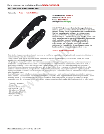 Karta informacyjna produktu w sklepie WWW.GOODS.PL Data