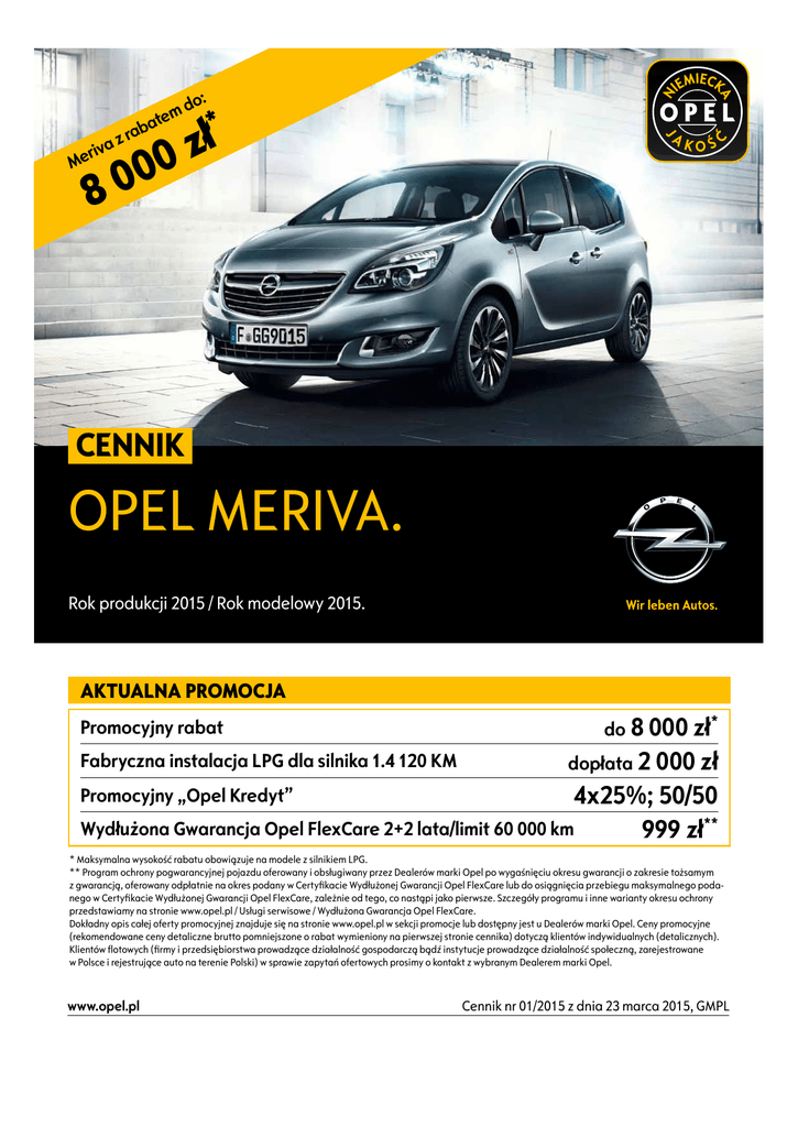 Opel Meriva ceny 2015 - Opel Meriva cennik 2015