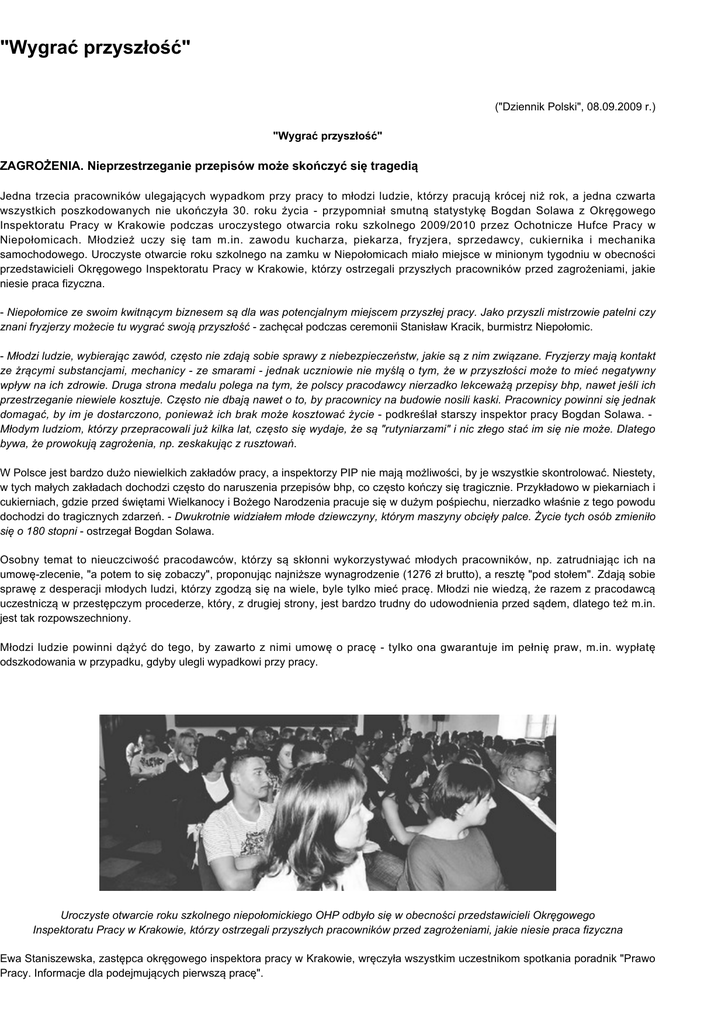 przedstawicieli Okręgowego Inspektoratu Pracy w Krakowie, którzy ostrzegali przyszłych pracowników przed zagrożeniami, jakie