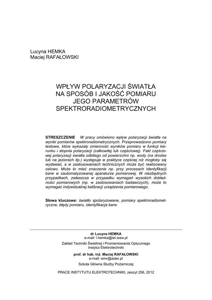 wpływ polaryzacji światła na sposób i jakość pomiaru jego