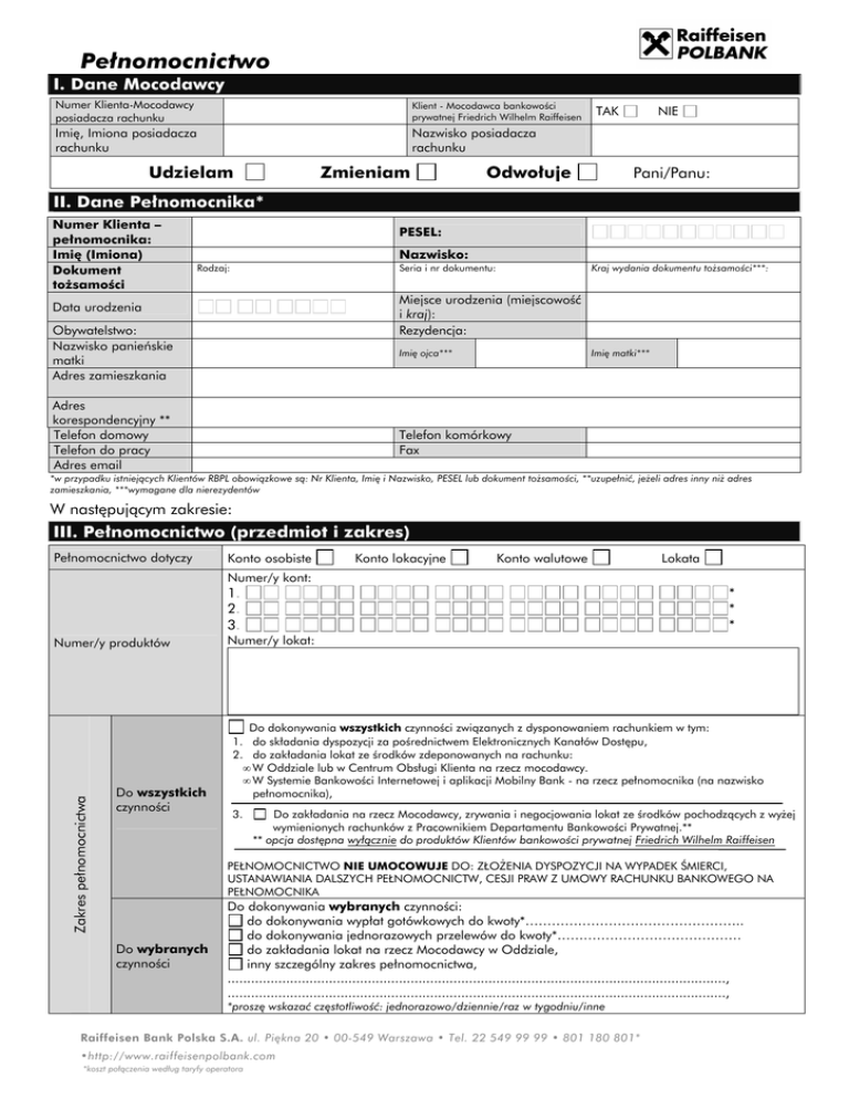 Druk pełnomocnictwa - Raiffeisen Polbank