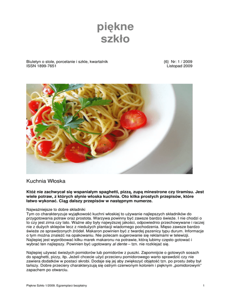 wiele potraw, z których słynie włoska kuchnia. Oto kilka prostych przepisów, które
