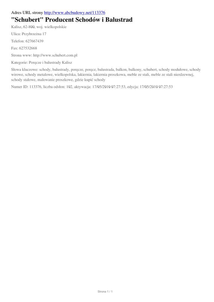 "Schubert" Producent Schodow i Balustrad, Kalisz