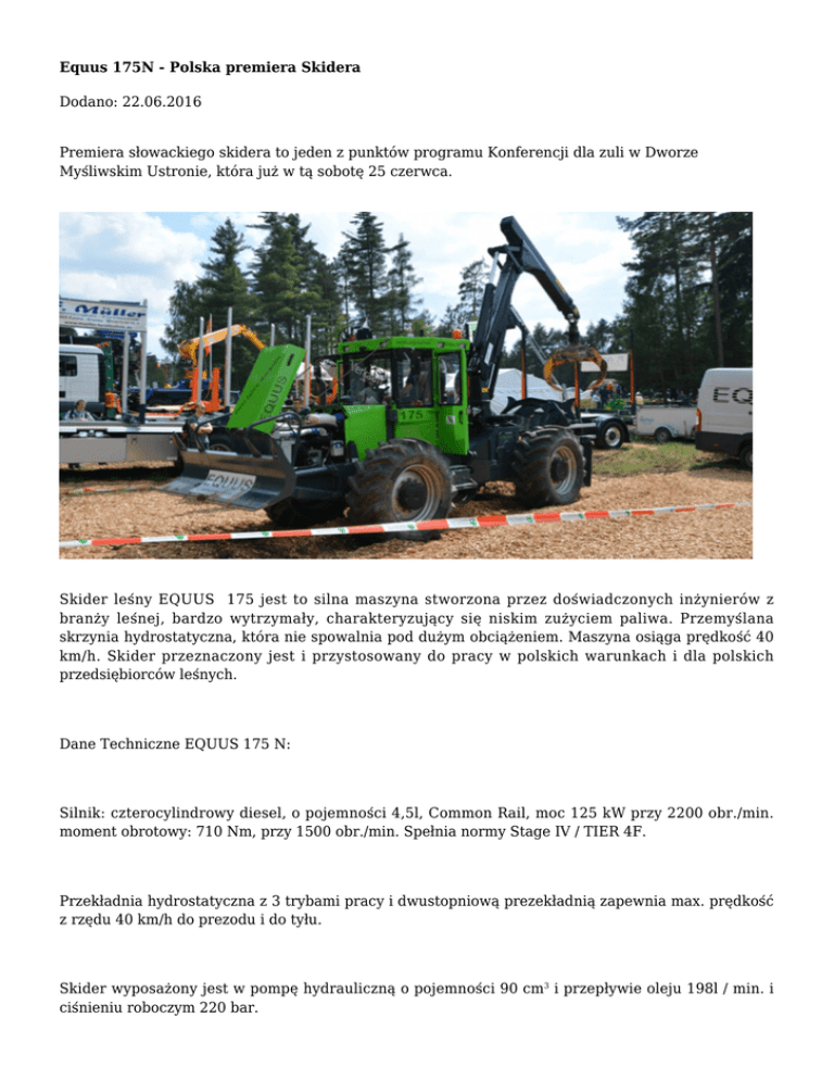 Firmy Leśne - Equus 175N - Polska premiera Skidera