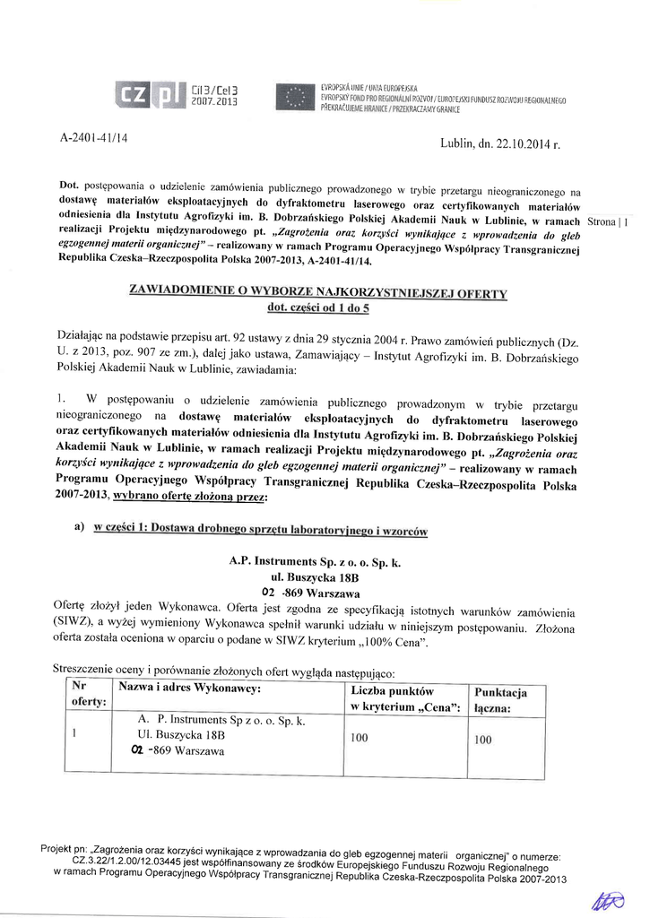 U. z 2073, poz. 907 ze zm.), dalej jako ustawa, Zamawiaj4cv _ Inst54ut Agrofizyki