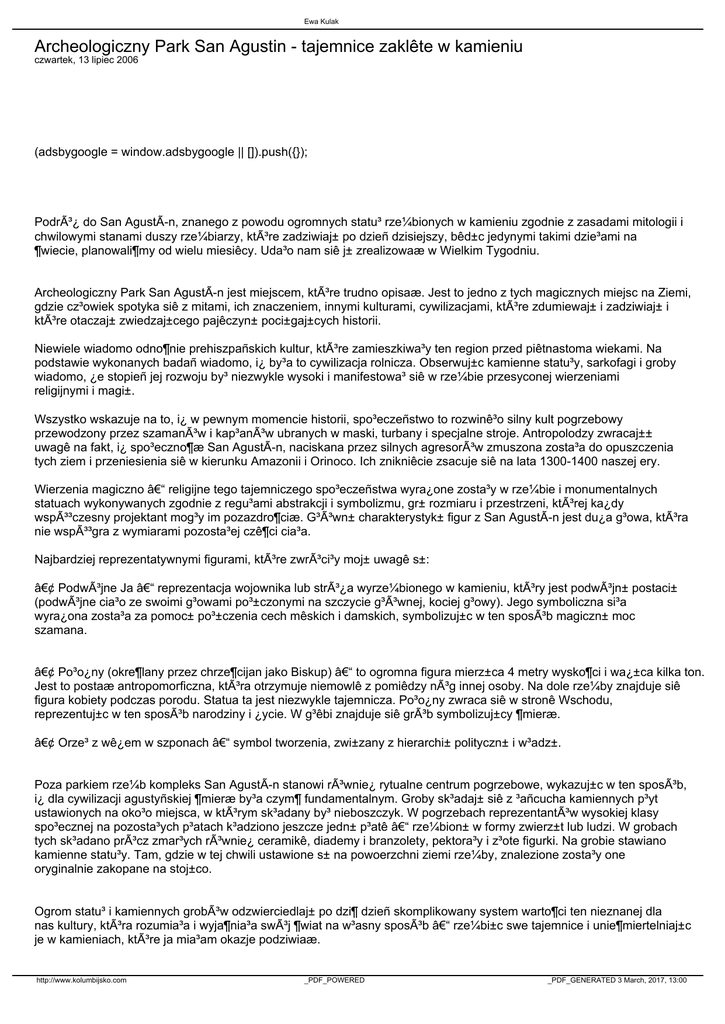 Archeologiczny Park San AgustÃ-n jest miejscem, które trudno opisaæ. Jest to jedno z tych magicznych miejsc na Ziemi,