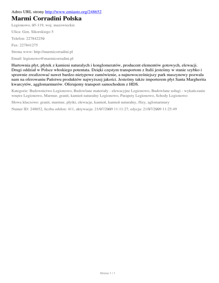Marmi Corradini Polska, Legionowo, Gen. Sikorskiego 5