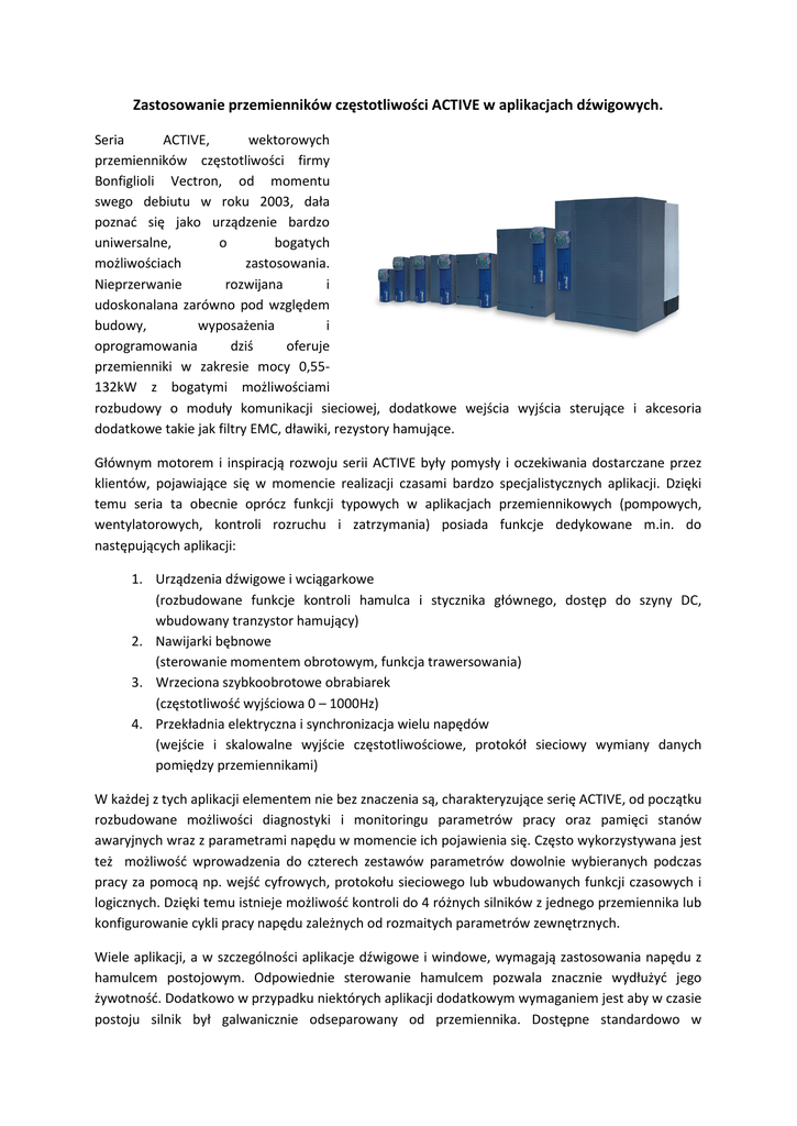 Zastosowanie przemienników częstotliwości serii ACTIVE