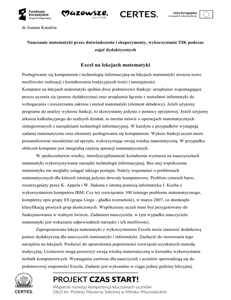 Excel na lekcjach matematyki