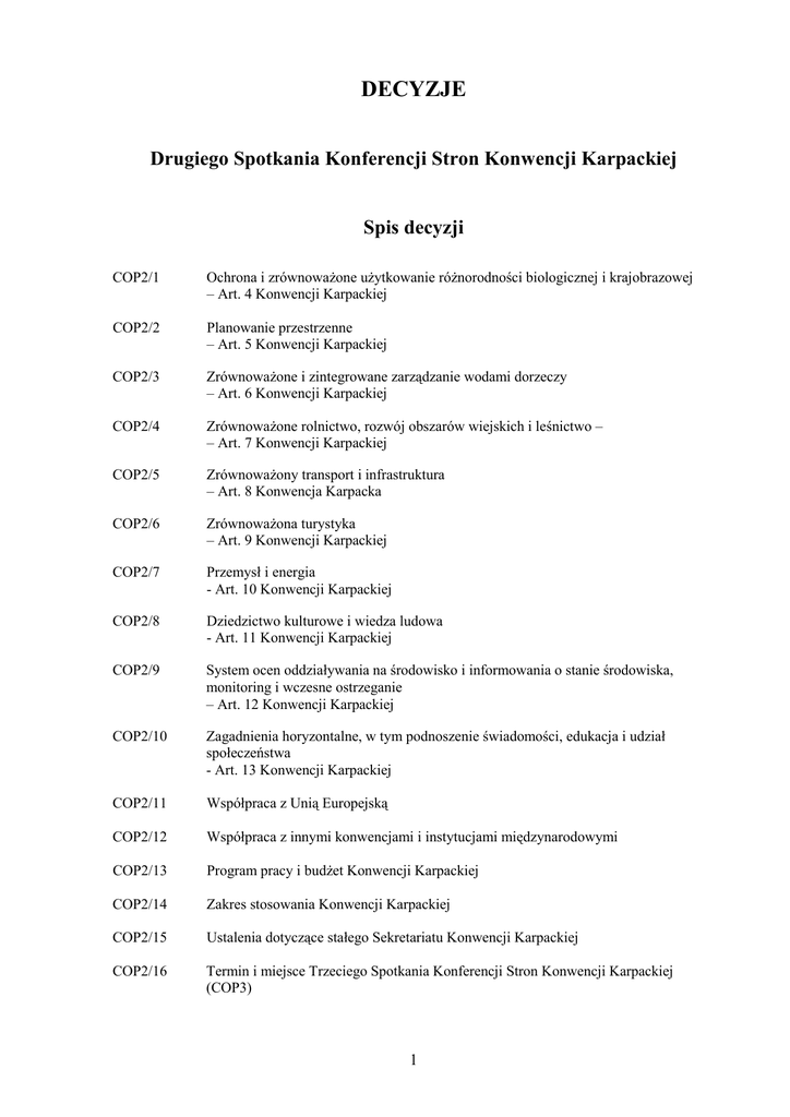Decyzje Drugiego Spotkania Konferencji Stron Konwencji Karpackiej