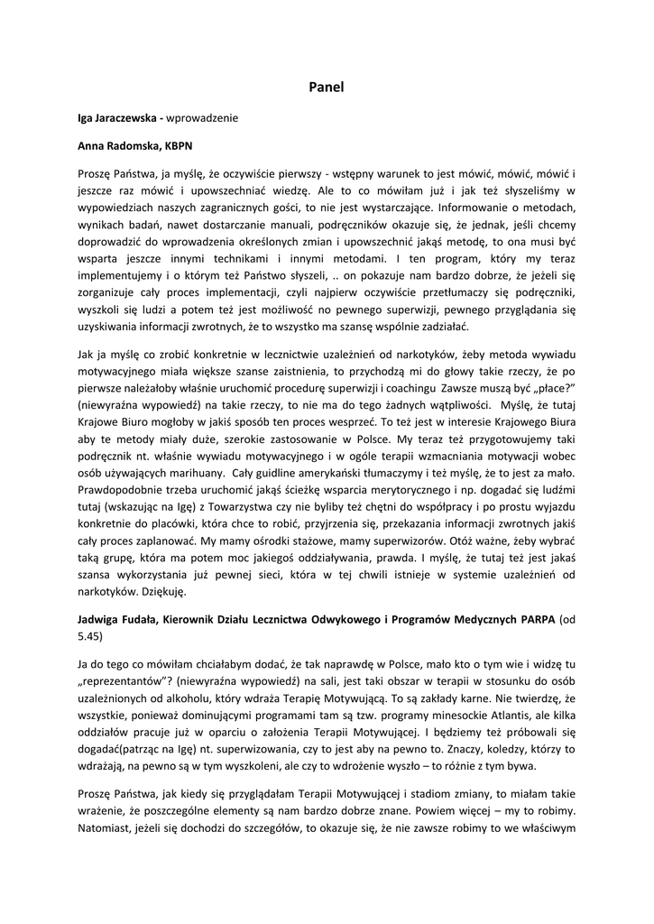 Panel_I_Konferencja - Polskie Towarzystwo Terapii Motywującej