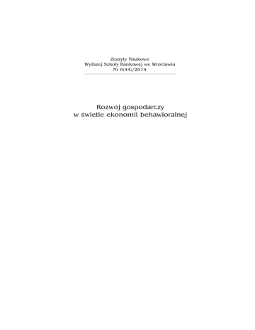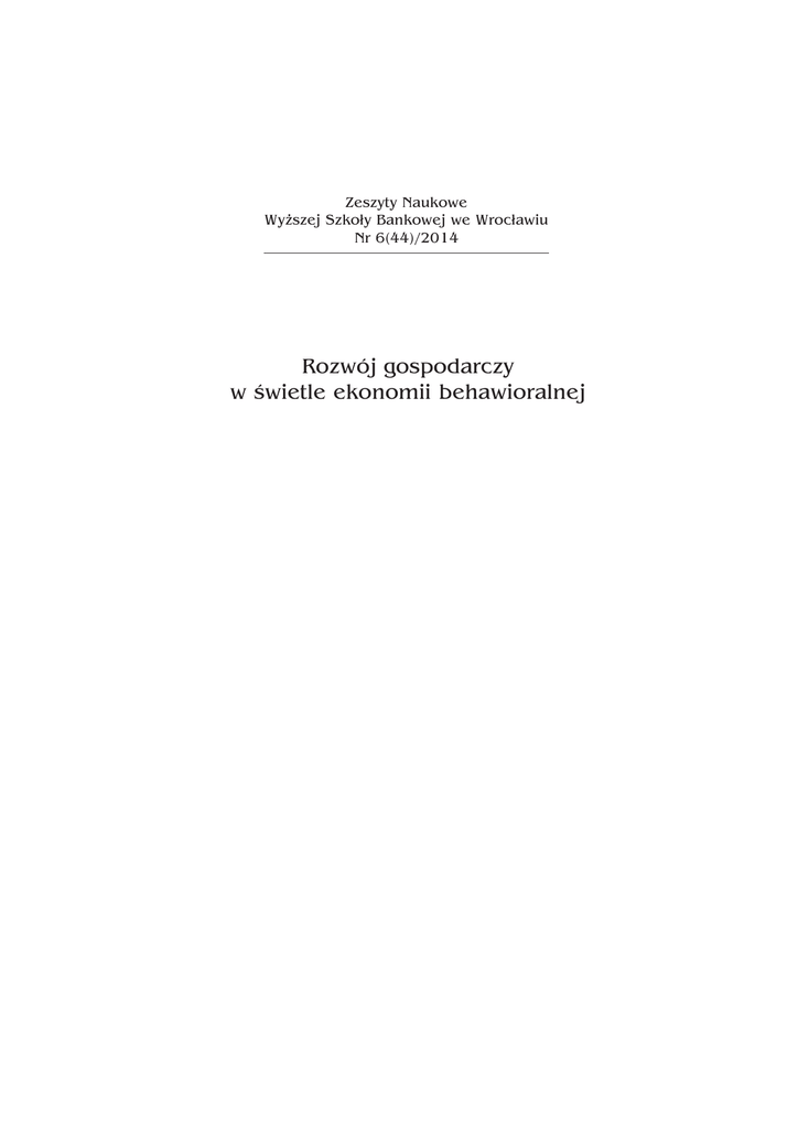 =HV]\W\1DXNRZH :\ĔV]HM6]NRä\%DQNRZHMZH:URFäDZLX Nr 6(44)/2014 1U )XQNFMRQRZDQLHSU]HGVLöELRUVWZ 5R]ZÑMJRVSRGDUF]\ ZĈZLHWOHHNRQRPLLEHKDZLRUDOQHM ZWXUEXOHQWQ\PRWRF]HQLX 7KH:URFODZ6FKRRORI%DQNLQJ 5HVHDUFK-RXUQDO 1R No. 6(44)/2014 (FRQRPLF'HYHORSPHQW %XVLQHVVDFWLYLW\ LQWKH/LJKW LQWKHWXUEXOHQWHQYLURQPHQW RI%HKDYLRUDO(FRQRPLFV YROXPHHGLWRUV $QGU]HM%XMDNDQG0DULDQ1RJD YROXPHHGLWRU 0DULDQ1RJD 7KH3R]QDQ6FKRRORI%DQNLQJ3UHVV :URFäDZ :URFODZ =HV]\W\1DXNRZH :\ĔV]HM6]NRä\%DQNRZHMZH:URFäDZLX 1U Nr 6(44)/2014 5R]ZÑMJRVSRGDUF]\ )XQNFMRQRZDQLHSU]HGVLöELRUVWZ ZĈZLHWOHHNRQRPLLEHKDZLRUDOQHM ZWXUEXOHQWQ\PRWRF]HQLX UHGDNWRU]\QDXNRZL $QGU]HM%XMDNL0DULDQ1RJD UHGDNWRUQDXNRZ\ 0DULDQ1RJD :\GDZQLFWZR :\ĔV]HM6]NRä\%DQNRZHMZ3R]QDQLX :URFäDZ :URFäDZ Rada naukowa / Research Council 3U]HZRGQLF]ąFD&KDLUZRPDQSURIGUKDE0DULD&LHĞODN3ROVND &]áRQNRZLH0HPEHUVGUKDE%DUEDUD$'HVSLQH\ĩRFKRZVND)UDQFMD SURIQDG]ZGUKDE$QGU]HM%XMDN3ROVNDSURIGUKDE-HQV/DDJH+HOOPDQ6]ZHFMD prof. dr hab. 3LRWU0LJRĔ3ROVNDSURIGUKDE:DOHQW\QD3LGOLVQ\XN6áRZDFMD SURIGUKDE$QLHOD6W\Ğ3ROVNDSURIGUKDE:DVLOLM6]ZHF8NUDLQD prof. dr hab. -DQ9DFKDO&]HFK\SURIGUKDE-XWWD:HEHU1LHPF\ .RPLWHWUHGDNF\MQ\(GLWRULDO%RDUG 3U]HZRGQLF]ąF\&KDLUPDQSURIGUKDE6WHIDQ)RUOLF] &]áRQNRZLH0HPEHUVSURIQDG]ZGUKDE0DFLHM-DVLĔVNLSURIQDG]ZGUKDE.U]\V]WRIàRERV SURIGUKDE6WDQLVáDZ6W\ĞSURIQDG]ZGUKDE-DFHN8QROG &]DVRSLVPRUHFHQ]RZDQHZHGáXJVWDQGDUGyZ0LQLVWHUVWZD1DXNLL6]NROQLFWZD:\ĪV]HJR /LVWDUHFHQ]HQWyZQDVWURQLHZZZZVESOZURFODZOLVWDUHFHQ]HQWRZ RUD]ZRVWDWQLPQXPHU]HF]DVRSLVPD]GDQHJRURNX 3URFHGXUDUHFHQ]RZDQLD5HYLHZLQJ3URFHGXUHZZZZVESOZURFODZSURFHGXUDUHFHQ]RZDQLD 7KHMRXUQDOUHYLHZHGLQFRPSOLDQFHZLWKWKH0LQLVWU\RI6FLHQFHDQG+LJKHU(GXFDWLRQ 7KHOLVWRISHHUUHYLHZHUVLVDYDLODEOHDWZZZZVESOZURFODZOLVWDUHFHQ]HQWRZ DQGWKHPRVWUHFHQWLVVXHRIWKHMRXUQDOLQWKHJLYHQ\HDU Ä=HV]\W\1DXNRZH:6%ZH:URFáDZLX´VąXPLHV]F]RQHQDOLĞFLHF]DVRSLVPSXQNWRZDQ\FK 0LQLVWHUVWZD1DXNLL6]NROQLFWZD:\ĪV]HJR]GQLDUZ\ND]Ä%´SR]\FMDOLF]EDSXQNWyZ &]DVRSLVPRMHVWUyZQLHĪ]DUHMHVWURZDQHZED]LH,&-RXUQDO0DVWHU/LVW,&9 &]DVRSLVPRMHVWLQGHNVRZDQHSU]H]7KLV-RXUQDOLVLQGH[HGE\ 7KH&HQWUDO(XURSHDQ-RXUQDORI6RFLDO6FLHQFHVDQG+XPDQLWLHVKWWSFHMVKLFPHGXSO%D](NRQKWWSED]HNRQLFPHGXSO 'RVWĊSRQOLQHGRÄ=HV]\WyZ1DXNRZ\FK:\ĪV]HM6]NRá\%DQNRZHMZH:URFáDZLX´2QOLQHDFFHVVWR³7KH:URFODZ 6FKRRORI%DQNLQJ5HVHDUFK-RXUQDO´DWKWWSZVESOELEOLRWHNDF\IURZD 5HGDNWRUQDF]HOQ\F]DVRSLVPD(GLWRULQFKLHI SURIQDG]ZGUKDE-RKDQQHV3ODWMH:\ĪV]D6]NRáD%DQNRZDZH:URFáDZLX 5HGDNWRUWHPDW\F]Q\WRPX7KHPHHGLWRURIYROXPH SURIGUKDE0DULDQ1RJD:\ĪV]D6]NRáD%DQNRZDZH:URFáDZLX 5HGDNWRUVWDW\VW\F]Q\6WDWLVWLFDOHGLWRU GU$QQD%áDF]NRZVND 6HNUHWDU]QDXNRZ\±RVREDGRNRQWDNWX6FLHQWL¿FHGLWRU±FRQWDFWSHUVRQ GU7RPDV]5yOF]\ĔVNLSKRQHPRELOHHPDLOUHGDNFMD#ZVEZURFODZSO :HU\¿NDFMDVWUHV]F]HĔZMĊ]\NXDQJLHOVNLP6XPPDULHVUHYLHZVLQ(QJOLVKE\ 7RPDV]*yUVNL 5HGDNWRUSURZDG]ąF\7H[WHGLWRU (OĪELHWD7XU]\ĔVND 5HGDNFMDLNRUHNWD(GLWLQJDQGSURRIUHDGLQJ :RMFLHFK1RZDNRZVNL 6NáDGLáDPDQLH7\SHVHWWLQJ 0DFLHM7RU]ZZZPXQGDSO 3URMHNWRNáDGNL&RYHUGHVLJQ -DQĝOXVDUVNL :HUVMDSLHUZRWQD±SXEOLNDFMDGUXNRZDQD6RXUFHYHUVLRQ±SULQWHGSXEOLFDWLRQ 1DNáDGHJ]&LUFXODWLRQFRSLHV ,QVW\WXFMD¿QDQVXMąFD)LQDQFLQJ$XWKRULW\:\ĪV]D6]NRáD%DQNRZDZH:URFáDZLX &RS\ULJKWE\:\ĪV]D6]NRáD%DQNRZDZ3R]QDQLX ,661 :<'$:1,&7:2:<ĩ6=(-6=.2à<%$1.2:(-:32=1$1,8 DO1LHSRGOHJáRĞFL3R]QDĔWHO HPDLOZ\GDZQLFWZR#ZVESR]QDQSOG]LDOKDQGORZ\#ZVESR]QDQSOZZZZ\GDZQLFWZRZVESR]QDQSO 'UXNLRSUDZD3ULQWHGDQGERXQGE\=DNáDG3ROLJUD¿F]Q\0RĞLàXF]DN3R]QDĔ 6SLVWUHĞFL :VWĊS0DULDQ1RJD $JQLHV]ND&KRáRGHFND *RVSRGDUNDRSDUWDQDZLHG]\ZQRZ\PSDUDG\JPDFLHUR]ZRMX 0DáJRU]DWD+DáDWàDĞ0LURVáDZàDĞ0DUFLQ*DZHáàXNDV]0DNRZVNL 0RGHOHLPHWRG\EDGDQLDVDW\VIDNFMLNOLHQWD 7RPDV]-XUF]\N 5ROD7U\EXQDáX6SUDZLHGOLZRĞFL8QLL(XURSHMVNLHMZUHDOL]DFMLVZRERG\ SU]HGVLĊELRUF]RĞFLLVZRERG\ĞZLDGF]HQLDXVáXJ 'DZLG.RĞFLHZLF] 0LĊG]\QDURGRZDNRQNXUHQF\MQRĞüSDĔVWZQRUG\FNLFKZODWDFK± SR]\FMDNRQNXUHQF\MQDQRUG\FNLFKJRVSRGDUHNZF]DVLHJOREDOQHJRNU\]\VX $QGU]HMàXF]\V]\Q 5R]ZyMORNDOQ\QDSHU\IHULDFK±Z\EUDQHSUREOHP\ $QGU]HMàXF]\V]\Q 7KHLPSDFWRIJOREDOL]DWLRQRQWKHORFDOHFRQRPLFVHFWRU±VHOHFWHGDVSHFWV /HFK0LNODV]HZVNL .XOWXUDRUJDQL]DF\MQDMDNRIRUPDNRPXQLNDFMLZHZQĊWU]QHMQDSU]\NáDG]LH 'RPX0DNOHUVNLHJR:'06$ $QQD0RW\OVND.XĨPD )DNWRULQJMDNRĨUyGáR¿QDQVRZDQLDG]LDáDOQRĞFLZSU]HGVLĊELRUVWZDFK ]VHNWRUD0ĝ3 0DULDQ1RJD%HQLDPLQ1RJD .XOWXUDDPDNURHNRQRPLDEHKDZLRUDOQD 6SLVWUHĞFL -DURVáDZ5HGR 3U]HVáDQNLLHOLPLQDFMDSRGZyMQHJR¿QDQVRZDQLDZSURMHNWDFK ZVSyá¿QDQVRZDQ\FK](XURSHMVNLHJR)XQGXV]X6SRáHF]QHJR 0DJGDOHQD5HGR 5H]HUZ\GHZL]RZHQDĞZLHFLH±DQDOL]DLRFHQDSR]LRPXG\QDPLNLLVWUXNWXU\ ZODWDFK 3DZHá6LDUND 7HVWRZDQLHZDUXQNyZVNUDMQ\FKZĞZLHWOHWHRULLZDUWRĞFLHNVWUHPDOQ\FK 3LRWU6]F]HSDQLDN &HOHZáDĞFLFLHOLSU]HGVLĊELRUVWZ]VHNWRUyZQLH¿QDQVRZ\FKZ3ROVFH ZODWDFK 7DEOHRI&RQWHQWV ,QWURGXFWLRQ0DULDQ1RJD $JQLHV]ND&KRáRGHFND .QRZOHGJHEDVHGHFRQRP\LQDQHZSDUDGLJPRIGHYHORSPHQW 0DáJRU]DWD+DáDWàDĞ0LURVáDZàDĞ0DUFLQ*DZHáàXNDV]0DNRZVNL 0RGHOVDQGPHWKRGVRIFXVWRPHUVVDWLVIDFWLRQUHVHDUFK 7RPDV]-XUF]\N 7KHUROHRIWKH&RXUWRI-XVWLFHRIWKH(XURSHDQ8QLRQLQUHDOL]DWLRQWKHIUHHGRP RIHVWDEOLVKPHQWDQGIUHHGRPWRSURYLGHVHUYLFHV 'DZLG.RĞFLHZLF] ,QWHUQDWLRQDOFRPSHWLWLYHQHVVRIWKH1RUGLF&RXQWULHVLQWKH\HDUV± DFRPSHWLWLYHSRVLWLRQRI1RUGLFHFRQRPLHVLQWKHWLPHVRIJOREDOFULVLV $QGU]HMàXF]\V]\Q 6HOHFWHGDVSHFWVRIORFDOGHYHORSPHQWRQWKHSHULSKHU\ $QGU]HMàXF]\V]\Q 7KHLPSDFWRIJOREDOL]DWLRQRQWKHORFDOHFRQRPLFVHFWRU±VHOHFWHGDVSHFWV /HFK0LNODV]HZVNL 2UJDQL]DWLRQDOFXOWXUHDVDIRUPRILQWHUQDOFRPPXQLFDWLRQ 7KHFDVHRI%RRNLQJ+RXVH:'06WRFN&RPSDQ\ $QQD0RW\OVND.XĨPD 7KHUROHRIIDFWRULQJIRU¿QDQFLQJVPDOODQGPHGLXP±VL]HFRPSDQLHV 0DULDQ1RJD%HQLDPLQ1RJD &XOWXUHDQGEHKDYLRUDOPDFURHFRQRPLFV 7DEOHRI&RQWHQWV -DURVáDZ5HGR &RQGLWLRQVDQGHOLPLQDWLRQRIGRXEOH¿QDQFLQJRISURMHFWVFR¿QDQFHGIURP WKH(XURSHDQ6RFLDO)XQG 0DJGDOHQD5HGR )RUHLJQH[FKDQJHUHVHUYHVLQWKHZRUOG±WKHDQDO\VLVDQGDVVHVVPHQWRIWKHLUOHYHO G\QDPLFVDQGVWUXFWXUHLQWKH\HDUV 3DZHá6LDUND 6WUHVVWHVWLQJDFFRUGLQJWRH[WUHPHYDOXHWKHRU\ 3LRWU6]F]HSDQLDN *RDOVRIRZQHUVRIQRQ¿QDQFLDOVHFWRUVHQWHUSULVHVLQ3RODQG RYHUWKH\HDUV Zeszyty Naukowe Wyższej Szkoły Bankowej we Wrocławiu Nr 6(44)/2014 Agnieszka C