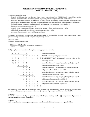 DZIELENIE W SYSTEMACH UZUPEŁNIENIOWYCH (ALGORYTM