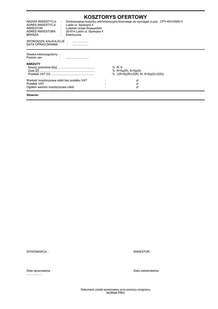 kosztorys ofertowy - Lubelski Urząd Wojewódzki
