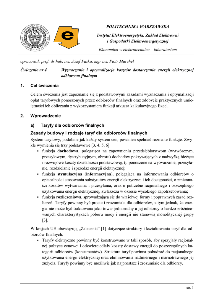opracował: prof. dr hab. inż. Józef Paska, mgr inż. Piotr Marchel