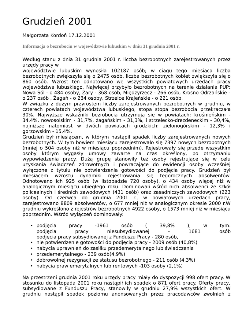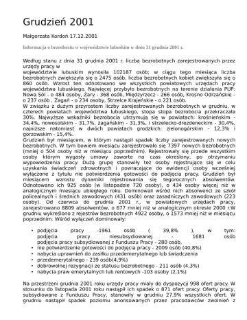 Grudzień 2001 - Wojewódzki Urząd Pracy w Zielonej Górze
