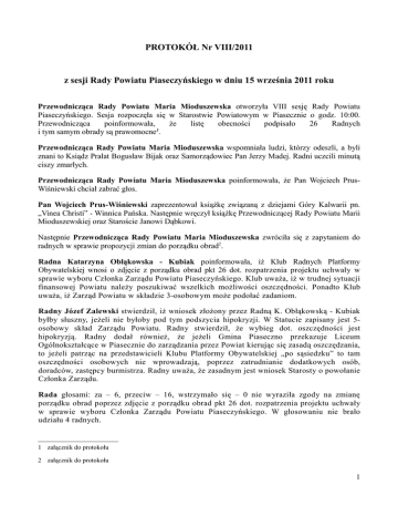 PROTOKÓŁ Nr VIII/2011 z sesji Rady Powiatu Piaseczyńskiego w
