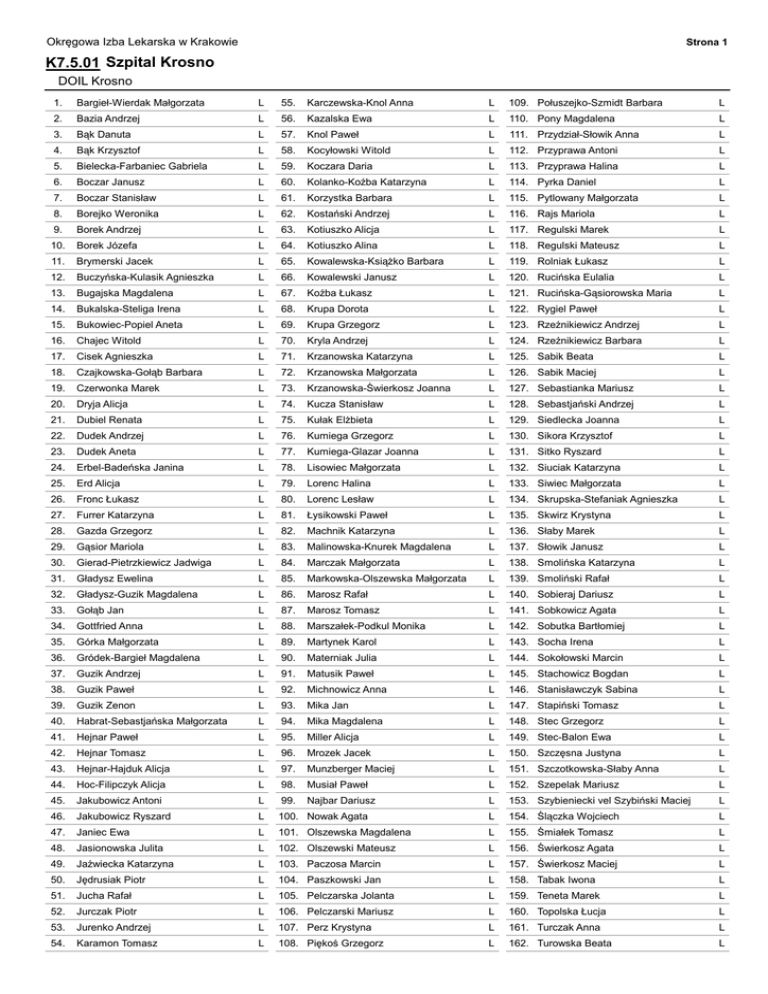 Lista osobowa rejonu - Okręgowa Izba Lekarska w Krakowie