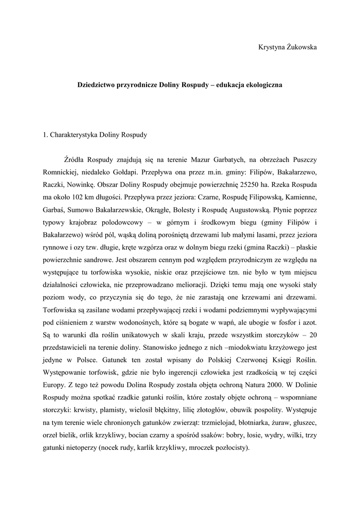 DZIEDZICTWO PRZYRODNICZE DOLINY ROSPUDY