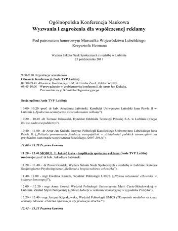 Lublinie („Społeczno-semiotyczne uwarunkowania reklamy”)