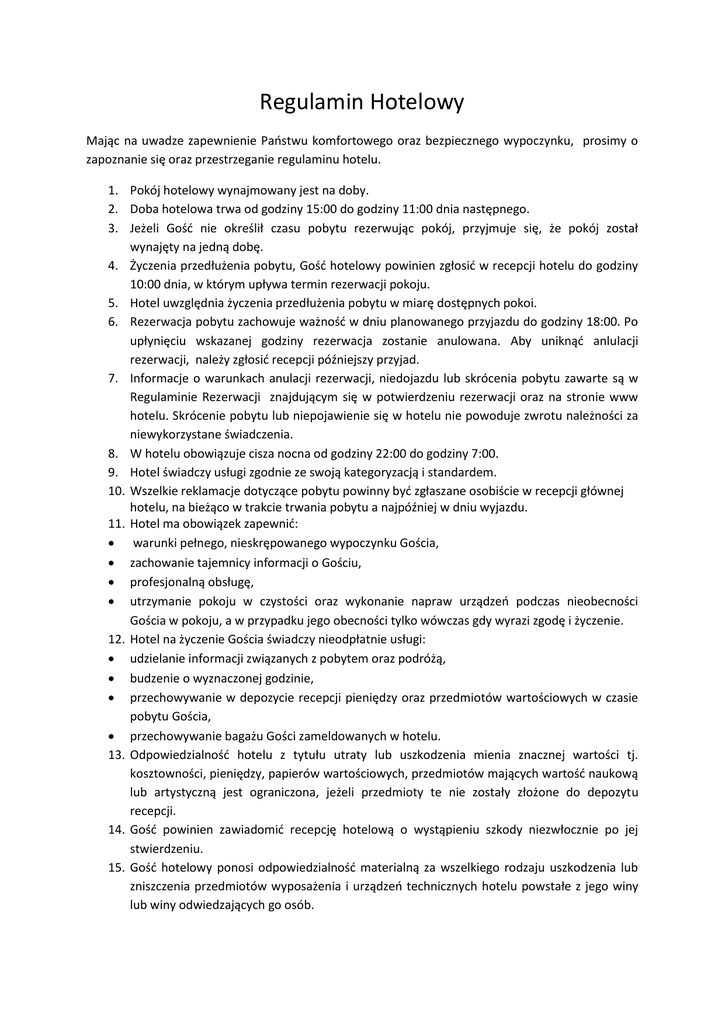 Regulamin Hotelowy
