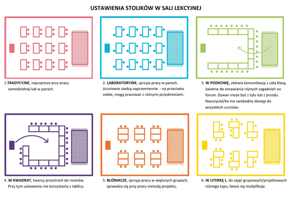 USTAWIENIA STOLIKÓW W SALI LEKCYJNEJ