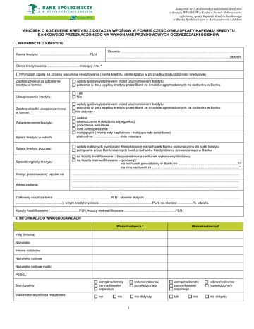 Wniosek o kredyt - Bank Spółdzielczy w Aleksandrowie Łódzkim