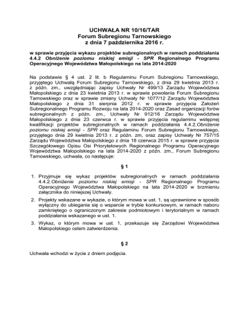 UCHWAŁA NR 10/16/TAR Forum Subregionu Tarnowskiego z dnia 7