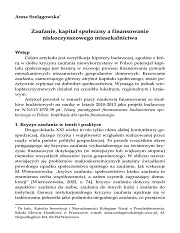 Zaufanie, kapitał społeczny a finansowanie niskoczynszowego