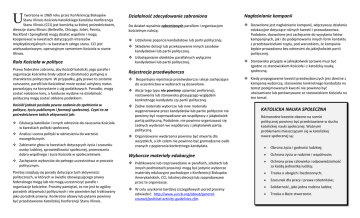 U tworzona w 1969 roku przez Konferencję Biskupów Stanu Illinois Kościoła Katolickiego Katolicka Konferencja Stanu Illinois (CCI) jest komórką za której pośrednictwem, diecezje stanu Illinois (Belleville, Chicago, Joliet, Peoria, Rockford i Springfield) mogą działać wspólnie i mogą kooperować w kwestiach dotyczących interesów międzydiecezjalnych i w kwestiach całego stanu. CCI jest wielozadaniowym, operacyjnym ramieniem Kościoła w stanie Illinois. Rola Kościoła w polityce Prawo federalne zabrania, aby Kościół katolicki, jego parafie i organizacje kościelne brały udział w działalności partyjnej o charakterze politycznym. W przypadku, gdy prawo to zostanie naruszone, parafii lub Kościołowi może zostać uchylony status pozwalający na korzystanie z ulg podatkowych. Ponadto, mogą zostać nałożone kary, a fundusze wydane na działalność polityczną mogę zostać obłożne podatkiem. Kościół jednak posiada pewne zadania do spełnienia w polityce, życiu publicznym i formacji społecznej. Czyni to za pośrednictwem takich aktywności jak: Edukacja katolików i innych odnośnie do nauczania Kościoła w kwestiach polityki społecznej. Analiza i ocena polityki w odniesieniu do wartości ewangelicznych. Zabieranie głosu w kwestiach dotyczących życia i szacunku osoby ludzkiej, sprawiedliwości społecznej, promowania dobra wspólnego i życia Kościoła w społeczeństwie. Zachęcanie wyborców do pełnego uczestnictwa w procesie politycznym. Poniżej znajdują się porady dotyczące tych aktywności politycznych, w których w świetle obowiązującego prawa federalnego mogą lub nie mogą uczestniczyć parafie i organizacje kościelne. Prosimy pamiętać, że nie jest to ogólny poradnik aktywności politycznych i nie powinien być traktowany jako poradnik prawny. Konkretne obawy lub pytania powinny być przedstawione Katolickiej Konferencji Stanu Illinois. Działalność zdecydowanie zabroniona Nagłaśnianie kampanii Do działań wyraźnie zabronionych parafiom i organizacjom kościelnym należą: Dozwolone jest nagłaśnianie kampanii, włączywszy działania edukacyjne dotyczące różnych kwestii i prawodawstwa. Podobnie, dozwolone jest zachęcanie do wysyłania listów kampanijnych, jak i do podejmowania innych form kontaktu z przedstawicielami rządu, pod warunkiem, że kampania będzie prowadzona bez odniesień do jakiejkolwiek partii politycznej. Udzielanie poparcia kandydatowi lub partii politycznej. Składanie dotacji lub przekazywanie innych zasobów kandydatowi lub partii politycznej. Udostępnianie obiektów parafialnych wyłącznie kandydatowi lub partii politycznej. Rejestracja przedwyborcza Bezpartyjna rejestracja przedwyborcza i akcje zachęcające do uczestnictwa w wyborach są dozwolone. Akcje tego typu nie powinny ujawniać preferencji, nastawienia lub stanowiska głosującego względem konkretnego kandydata czy partii politycznej. Żadne materiały wyborcze lub inne materiały wygenerowane przez kandydatów lub partie polityczne nie powinny być rozprowadzane we współpracy z jakąkolwiek partią polityczną. Podobnie, nie powinno organizować się żadnych wydarzeń we współpracy z jakąkolwiek partią polityczną. Organizowane wydarzenia powinny być otwarte dla wszystkich, a ich celem nie powinno być gromadzenie osób znanych z popierania konkretnego kandydata. Stanowisko przyjęte w jakiejkolwiek sprawie musi być zgodne ze stanowiskiem Kościoła i z katolicką nauką społeczną. Kiedy propagowanie kwestii przedwyborczych jest zbieżne z kampanią wyborczą, stanowisko konkretnego kandydata na temat podejmowanych kwestii nie powinno być utożsamiane lub porównywane ze stanowiskiem Kościoła na ten temat. KATOLICKA NAUKA SPOŁECZNA Różnorodne kwestie obecne na scenie politycznej powinny być przedstawiane w duchu katolickiej nauki społecznej. Ważnymi problemami mieszczącymi się w katolickiej nauce społecznej są: Obrona życia i godności ludzkiej; Wyborcze materiały edukacyjne Ochrona życia w rodzinie i wspólnocie; Publikowane lub rozprowadzane w parafiach, szkołach lub innych podmiotach prowincji mogą być jedynie wyborcze materiały edukacyjne pochodzące z Konferencji Biskupów Amerykańskich, CCI, lokalnej diecezji lub zaaprobowane przez te organizacje. Ochrona praw człowieka i odpowiedzialność za każdą jednostkę ludzką; Troska o ubogich i bezbronnych; Szacunek dla pracy i prawa robotników; Solidarność, jako jedna rodzina ludzka; Troska o Boże stworzenie. W celu uzyskania bardziej szczegółowych porad prosimy odwiedzić: http://www.usccb.org/about/generalcounsel/political-activity-guidelines.cfm. Debaty edukacyjne wyborców Bezstronne debaty edukacyjne organizowane przez wyborców, podczas których dopuszcza się obecność kandydatów, mogą być sponsorowane przez parafię lub organizację kościelną. Wszyscy autentyczni kandydaci na piastowanie konkretnych stanowisk biorący udział w debacie, muszą być zaproszeni do uczestnictwa w niej. Pytania powinny być przygotowane i zadawane podczas niezależnego, bezpartyjnego panelu. Ponadto, pytania muszą być zadawane w obiektywny, bezstronny sposób. Tematem dyskusji powinna być szeroka gama problemów. Każdy z kandydatów powinien mieć równe możliwości przedstawienia swojego punktu widzenia odnośnie do każdej z poruszanych kwestii. Moderator debaty nie powinien czynić żadnych komentarzy sugerujących poparcie lub dezaprobatę dla konkretnego kandydata. Dystrybucja materiałów wyborczych na posesji parafii i organizacji kościelnych Dołącz do zwolenników Katolickiej Konferencji Stanu Illinois na Facebooku i Twitterze! www.facebook.com/CatholicConferenceofIllinois @CatholicConfIL 65 E. Wacker Place Suite 1620 Chicago, IL 60601 (312) 368-1066 (312) 368-1090 Fax __________ Parafie i organizacje kościelne powinny unikać jakiegokolwiek uczestnictwa w autoryzowaniu lub w ogóle autoryzowania dystrybucji publikacji związanych z ka