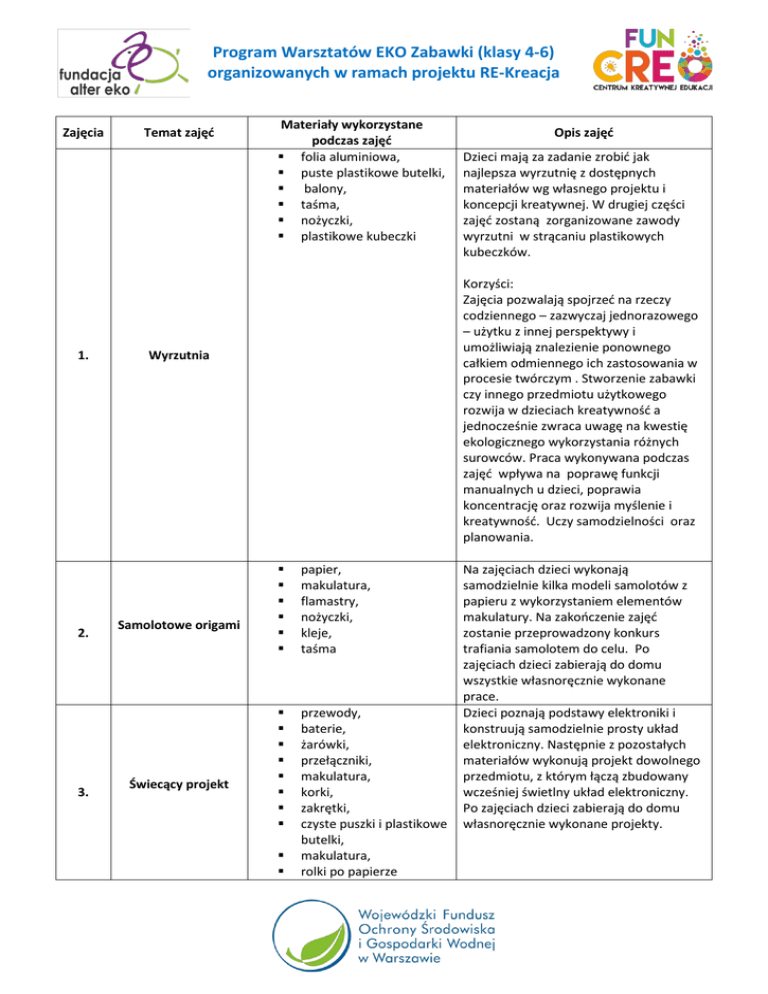 Program Warsztatów EKO Zabawki (klasy 4-6)