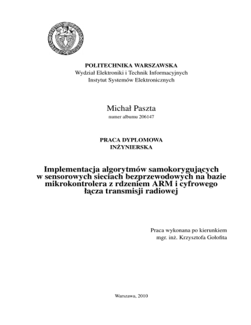 Praktyczna cz˛eść pracy dyplomowej została zrealizowana w Instytucie Łaczności