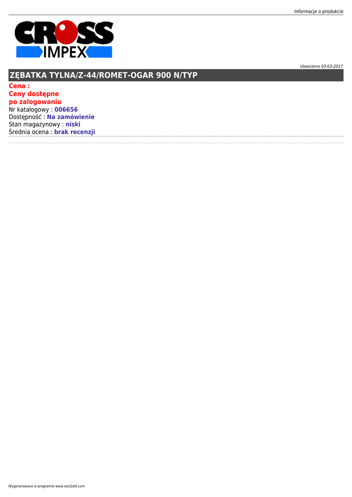 Informacje o produkcie Utworzono 03-03-2017 ZĘBATKA TYLNA/Z-44/ROMET-OGAR 900 N/TYP Cena : Ceny dostępne po zalogowaniu Nr katalogowy : 006656 Dostępność : Na zamówienie Stan magazynowy : niski Średnia ocena : brak recenzji Wygenerowano w programie www.oscGold.com