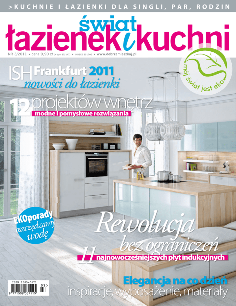 >KUCHNIE I ŁAZIENKI DLA SINGLI, PAR, RODZIN NR 3/2011 • cena 9,90 z (w tym 8% VAT) • INDEKS 351709 • www.dobrzemieszkaj.pl Frankfurt 2011 ISHnowości do łazienki projektów wnętrz 12 modne i pomysłowe rozwiązania dy a r o p O EK dzamy oszczę wodę Rewolucja 11 bez ograniczeń najnowocześniejszych płyt indukcyjnych Elegancja na co dzień inspiracje, wyposażenie, materiały projekt łazienka gościnna Poza schematami 80 3/2011 ■ w w w.dobr zemieszk aj.pl projekt łazienka gościnna K o n t r a s t y z c h a r a k t e r e m ARCH. LILIANA MASEWICZ-KOWALSKA Projekt łazienki miał być dość ostry, z tak zwanym charakterem. Efekt mocnego kontrastu jest zamierzony – aby nie było nudno. Kształty ceramiki są minimalistyczne, jeśli chodzi o zajmowanie miejsca w przestrzeni: minimum formy, maksimum efektu. Gwarantują łatwe dojście do sprzętów, przez co pomieszczenie jest bardzo funkcjonalne. Ceramika nie przytłacza, sprawia wrażenie bardzo lekkiej i zwiewnej, a w kontrastowej oprawie daje mocny efekt. CAŁY DOM, MIESZCZĄCY TĄ WYJĄTKOWĄ ŁAZIENKĘ, JEST NIEKONWENCJONALNY. OWA NIETYPOWOŚĆ POLEGA NA ODWRÓCENIU TRADYCYJNEGO MODELU KSZTAŁTOWANIA PRZESTRZENI DOMOWEJ. ZGRUPOWANE POMIESZCZENIA STANOWIĄ BOWIEM „TRZON”, WOKÓŁ KTÓREGO ZAPROJEKTOWANO PRZENIKAJĄCE SIĘ STREFY HOLU, JADALNI I SALONU. Odczuwalna przestronność wnętrza to przede wszystkim efekt zastosowania ogromnych lustrzanych tafli, które powielają, odbijają i tworzą iluzję głębi. Czarne, strukturalne płytki (60x60 cm) wybrano z serii „Paragon”, jasne – „Uni Grigio” firmy Ceramica Iris. Designerski odpływ liniowy w posadzce to model z katalogu Kessel. RYS INNOWACYJNOŚCI, jaki nadano łazience, to jednocześnie znak rozpoznawczy stylu arch. Liliany Masewicz-Kowalskiej. Autorka projektu wnętrza z powodzeniem omija utarte schematy, a nawet obala stereotypy. W tym pomieszczeniu miejsce tradycyjnych, pełnych drzwi zajął szklany panel osadzony w stalowej futrynie. Taki zabieg sprawił, że drzwi nie przytłaczają niewielkiego pomieszczenia; przeciwnie – dodają mu przestronności i, co najważniejsze, wprowadzają do łazienki światło dzienne. Geometryczne kształty, lustrzane płaszczyzny, kontrasty kolorystyczne i faktury, brak zbędnych dodatków oraz bibelotów, to przejaw prostoty stylu i elegancji pomieszczenia. Łazienka zdaje się łączyć dwa bieguny. Z jednej strony, za sprawą kontrastowego zestawienia złamanej bieli z czernią, jest odzwierciedleniem współczesnego, chłodnego minimalizmu, z drugiej – dzięki wprowadzeniu czerwonych płytek – ciepła, zachęcająca do kąpieli i odpoczynku. w w w.dobr zemieszk aj.pl ■ 3/2011 81 Tafla lustra nad umywalką idealnie wydobywa fakturę czerwonych płytek z serii „Red Sea” (15x60 cm) Dune Magalos. Bateria umywalkowa to model „Cuadro” marki Tres. Nowoczesne, włoskie wzornictwo ceramiki sanitarnej z kolekcji „LaFontana” firmy Art Ceram nadaje wnętrzu designerski charakter. Umywalkę, sedes i pisuar zawieszono na stelażach podtynkowych firmy Grohe. Przy pomocy faktur i barw toaleta została subtelnie podzielona na strefy o różnych funkcjach. I tak przy wejściu powstała strefa umywalkowa, wyznaczona przez niską czerwoną ściankę, którą asymetrycznie otacza wielkie lustro. Jej autonomię dodatkowo sygnalizuje pas na posadzce, ułożony z dużych, jasnokremowych płyt gresowych (60x60 cm). Obecność kabiny prysznicowej zdradza jedynie elegancki panel prysznicowo-masażowy i liniowy odpływ w posadzce (firmy Kessel). Sedes i pisuar dyskretnie umieszczono na drugim planie. Lustrzane płaszczyzny są motywem przewodnim w całym domu. Tu, w małym pomieszczeniu, mają za zadanie optycznie powiększać łazienkę i potęgować wrażenie przestrzeni. Zwierciadła eksponują również designerską ceramikę sanitarną „LaFontana” firmy Art Ceram. Jej projektanci – Sandro Meneghello i Marco Paolelli – bazując na formie trójkąta, stworzyli kolekcję z mlecznego szkła i białej ceramiki. Nietuzinkowe wyposażenie przyciąga wzrok, ale także dynamizuje wnętrze. A goście? Nigdy nie pozostają obojętni wobec jego pięknej formy. ■ TEKST I STYLIZACJA: AGATA JODCZYK ■ ZDJĘCIA: MARCIN ONUFRYJUK Poza schematami autorka projektu: arch. Liliana Masewicz-Kowalska; EVEREST DESIGN Autorskie Studio Wnętrz i Architektury powierzchnia: ok. 6 m2 więcej projektów: 82 3/2011 ■ w w w.dobr zemieszk aj.pl