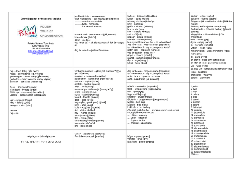 Grundläggande ord svenska - polska Polska Statens Turistbyrå