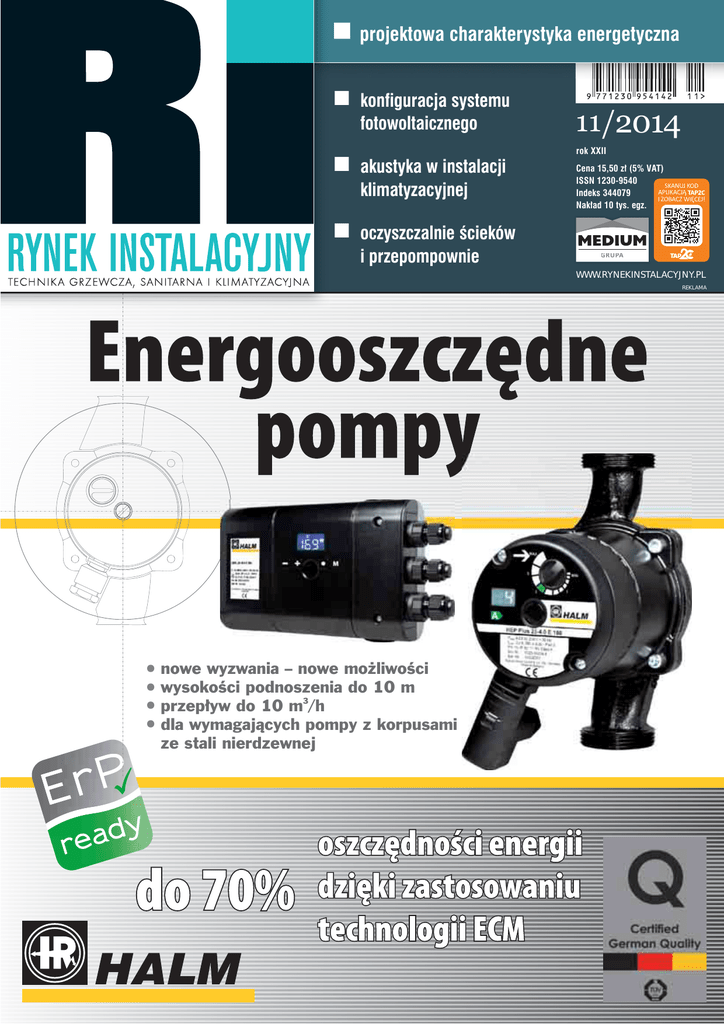 projektowa charakterystyka energetyczna konfiguracja systemu fotowoltaicznego akustyka w instalacji klimatyzacyjnej oczyszczalnie ścieków i przepompownie 11/2014 rok XXII Cena 15,50 zł (5% VAT) ISSN 1230-9540 SKANUJ KOD APLIKACJĄ Indeks 344079 I ZOBACZ WIĘCEJ! Nakład 10 tys. egz. GRUPA WWW.RYNEKINSTALACYJNY.PL REKLAMA ● ● ● ● nowe wyzwania – nowe możliwości wysokości podnoszenia do 10 m 3 przepływ do 10 m /h dla wymagających pompy z korpusami ze stali nierdzewnej TCÂEOD?GST;QMJ«¶JL;=ÂQGCD;D¸=SGLIEO QMTSMNECG/SGJ;NSEIG'FC?HNIGC3MJ«¶T;QI>HCEIG ;QJLTSMT¶SGLIEO ÀS=TSGSL?;FCT;=DCJF;H«QG;¶S=BCQC?FEC=B MIESIĘCZNIK INFORMACYJNO-TECHNICZNY ISSN 1230-9540, nakład 10 000 GRUPA Wydawca Grupa MEDIUM www.medium.media.pl Adres redakcji 04-112 Warszawa, ul. Karczewska 18 tel./faks 22 512 60 75 do 77 e-mail: [email protected] www.rynekinstalacyjny.pl Redaktor naczelny Waldemar Joniec, tel. 502 042 518 [email protected] Sekretarz redakcji Agnieszka Orysiak, tel. 600 050 378 [email protected] Redakcja Jerzy Kosieradzki (red. tematyczny), Aleksandra Cybulska (red. portalu internetowego), Joanna Korpysz-Drzazga (red. językowy), Agata Kendziorek-Skolimowska (red. statystyczny), Katarzyna Rybka (red. tematyczny), Jacek Sawicki (red. tematyczny), Bogusława Wiewiórowska-Paradowska (red. tematyczny) Reklama i marketing tel./faks 22 810 28 14, 512 60 70 Dyrektor biura reklamy i marketingu Joanna Grabek, [email protected] Dyrektor ds. marketingu i sprzedaży Michał Grodzki, [email protected] Kolportaż i prenumerata tel./faks 22 512 60 74, 810 21 24 Specjalista ds. prenumeraty Jerzy Lachowski, [email protected] Prenumerata realizowana przez RUCH S.A. Zamówienia na prenumeratę w wersji papierowej i na e-wydania można składać bezpośrednio na stronie www.prenumerata.ruch.com.pl. Ewentualne pytania prosimy kierować na adres e-mail: [email protected] lub kontaktując się z Telefonicznym Biurem Obsługi Klienta pod numerem: 801 800 803 lub 22 717 59 59 – czynne w godzinach 7.00 – 18.00. Koszt połączenia wg taryfy operatora. Administracja Danuta Ciecierska (HR), Barbara Piórczyńska (gł. księgowa) Skład, łamanie [email protected] Druk Zakłady Graficzne TAURUS Redakcja zastrzega sobie prawo do adiustacji tekstów i nie zwraca materiałów niezamówionych. Redakcja nie ponosi odpowiedzialności za treść reklam i ogłoszeń, ma też prawo odmówić publikacji bez podania przyczyn. Wszelkie prawa zastrzeżone © by Grupa MEDIUM. Rozpowszechnianie opublikowanych materiałów bez zgody wydawcy jest zabronione. Wersja pierwotna czasopisma – papierowa. Za publikację w „Rynku Instalacyjnym” MNiSW przyznaje jednostkom naukowym 5 punktów Wskazówki dla autorów i procedura recenzowania artykułów na rynekinstalacyjny.pl/redakcja Grupa MEDIUM jest członkiem Izby Wydawców Prasy Ś wiat się rozbudowuje – za 10 lat przybędzie ponad 30 mln m2 zabudowy, tj. blisko ¼ obecnej powierzchni. Taką prognozę stawia raport Navigant Research Global Building Stock Database. Budynki te trzeba będzie oświetlić, wentylować, ogrzewać lub chłodzić. Najwięcej nowych obiektów powstanie w Chinach i innych krajach rozwijających się. Będzie to z pewnością impuls dla tych państw do uważniejszego traktowania problemu emisji CO2 i efektywności energetycznej. Obecnie budynki odpowiadają za blisko połowę zużycia energii przez ludzkość. Nie da się w nieskończoność wytwarzać dla takiej liczby obiektów energii z węgla, gdy smog, np. w Pekinie, praktycznie uniemożliwia normalne życie. Szwedzi patrzą w przyszłość i już tworzą podstawy do tego, by za 50 lat ich budownictwo i transport miejski były samowystarczalne energetycznie i zeroemisyjne. Wówczas w miastach będzie mieszkać ok. 80% mieszkańców ziemi, podczas gdy dziś tylko 53%. Czy będzie to możliwe technicznie? Tak. Technologie pozyskiwania energii odnawialnej ciągle nas zaskakują. Na przykład wydawałoby się prosty wynalazek inżyniera z Kodnia na Podlasiu, któremu energetyka nie była w stanie zapewnić dostaw energii elektrycznej. Postanowił się od niej uniezależnić i skonstruował pionowe turbiny wiatrowe. Na Targach Poleko nagrodzono je Złotym Medalem, a wielu inwestorów ma chrapkę na handel tą technologią. W tym samym czasie z Kalifornii dociera informacja, że opracowano nowy materiał z nanocząsteczkami, który pochłania 90% padającej na niego energii słonecznej i zamienia ją w ciepło. Struktura tego materiału nanoszonego za pomocą spreju – jak farbę – tworzy pułapki dla promieniowania słonecznego. Rysuje to nowe perspektywy dla elektrowni słonecznych z parowymi generatorami oraz dla kolektorów słonecznych. W Polsce w ostatnich miesiącach dyskusje się o przyszłości kopalni węgla kamiennego i energetyki. Los nierentownych kopalń jest przesądzony, ale ubywa też zwolenników palenia węglem w domach. Coraz więcej mieszkańców polskich miast ma świadomość, że żyje w najbardziej zanieczyszczonych aglomeracjach Europy. Według Europejskiej Agencji Ochrony Środowiska z powodu zanieczyszczonego powietrza co roku przedwcześnie umiera ok. 40 tys. osób, a w pierwszej dziesiątce miast o najbardziej zatrutym powietrzu sześć jest polskich, w tym Kraków, Wrocław i Warszawa. Do tego dochodzą całe regiony w Polsce południowej – Dolny i Górny Śląsk, Małopolska i Podkarpacie ze swoimi miasteczkami i wsiami. Kraków już kilka lat temu wygrał bitwę o powietrze z okolicznymi hutami, koksowniami i elektrowniami. Okazało się jednak, że nie była to wielka bitwa, a tylko mała potyczka – teraz walczy z niską emisją z pieców i starych kotłów węglowych. Od 2 lat funkcjonuje Krakowski Alarm Smogowy. Wrocław także wypowiedział wojnę smogowi i ma Dolnośląski Alarm Smogowy, a na stronie mu poświęconej czytamy: Ponad 95% zanieczyszczeń benzo[a]pirenem oraz ok. 70% pyłów zawieszonych pochodzi z lokalnych pieców, w których spala