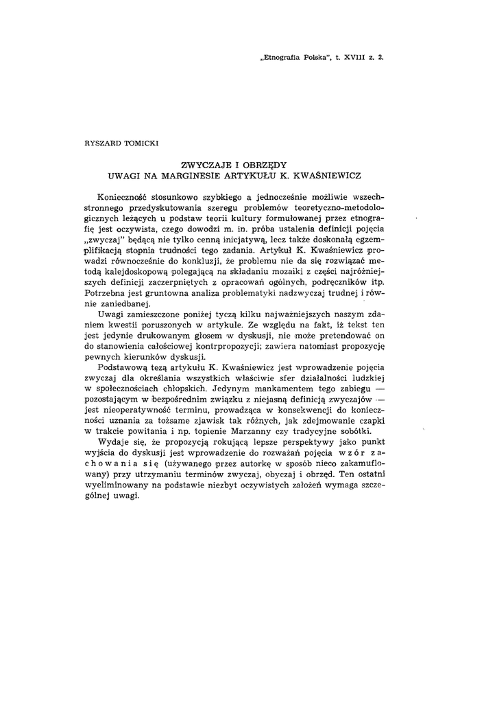 ZWYCZAJE I OBRZĘDY UWAGI NA MARGINESIE ARTYKUŁU K