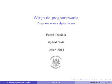 Wejście postaci x0 , x1 , . . . , xn – podproblemy postaci x0 , x1 , . . . , xi