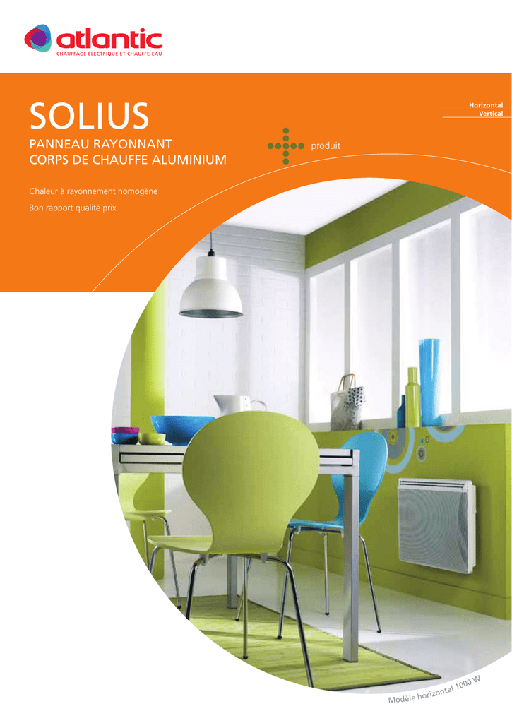 SOLIUS PANNEAU RAYONNANT CORPS DE CHAUFFE ALUMINIUM Horizontal Vertical produit Chaleur à rayonnement homogène photo non contractuelle Bon rapport qualité prix 000 al 1 t n o z ori Modèle h W Wyrób, który Pañstwo zakupili, by³ poddawany wielu testom i kontrolom po to, by zapewniæ jego wysok¹ jakoœæ. Mamy nadziejê, ¿e w zupe³noœci on Pañstwa zadowoli . INSTALACJA URZ¥DZENIA Kilka rad Przed rozpoczêciem monta¿u urz¹dzenia nale¿y zapoznaæ siê z niniejsz¹ instrukcj¹. Od³¹czyæ zasilanie przed jak¹kolwiek interwencj¹ we wnêtrze urz¹dzenia. Zachowaæ instrukcjê, nawet po dokonaniu monta¿u urz¹dzenia. 1) Gdzie zainstalowaæ urz¹dzenie ? - Urz¹dzenie niniejsze zosta³o zaprojektowane do pomieszczeñ mieszkalnych. We wszystkich innych przypadkach nale¿y skonsultowaæ siê z dealerem. - Monta¿u nale¿y dokonaæ zgodnie z regu³ami sztuki i obowi¹zuj¹cymi w danym kraju normami. - Urz¹dzenie spe³nia wymagania klasy || i jest zabezpieczone przed prypadkowym polewaniem go wod¹ . Mo¿e wiêc byæ instalowane w pomieszczeniach Tazienki (stvefa nv 2). - Jednak¿e trzeba pamiêtaæ o tym,¿e urz¹dzenie nie powinno znajdowaæ siê w zasiêgu rêki osoby bior¹cej k¹piel lub prysznic. - Prosimy o zachowanie minimalnych odleg³oœci od innych przedmiotów zgodnie ze schematem obrazujgcym umiejscowienie urz¹dzenia. - Je¿eli tapetê œcienn¹ macie zainstalowan¹ na piance, wówczas pod szkielet urz¹dzenia nale¿y w³o¿yæ podk³adkê o identycznej gruboœci jak podk³ad piankowy w taki sposób, ¿eby pozosta³a wolna przestrzeñ za urz¹dzeniem, która ograniczy oddziatywanie na regulacjê. - Nie wolno instalowaæ urz¹dzenia : ë W miejscu wystêpowania przeci¹gu powietrza. co mog³oby zak³óciæ jego regulacjê (pod urz¹dzeniem z kontrolowan¹ wentylacj¹ mechaniczn¹, itd...). ë Pod gniazdkiem electrycznym bêd¹cym stale pod napiêciem. - Monta¿ urz¹dzenia na wysokoœci powoduje podwy¿szenie temperatury na wyjœciu powietrza (o oko³o 10°C na 1000 m ró¿nicy poziomów ). 2) Jak montowaæ urz¹dzenie? 2-1) Odkrêciæ uchwyt mocuj¹cy od urz¹dzenia Zalecamy po³o¿enie p³yty promieniuj¹cej p³asko, przodem do pod³ogi. Nale¿y skorzystaæ z wkrêtaka p³askiego. 2-2) Przymocowaæ uchwyt mocuj¹cy Miejsca otworów B Miejsca otworów A «Zabrania sie przeróbek urzadzenia z wersji nasciennej na wersje «ruchoma» - poprzez dodatkowy montaz nózek lub kólek. 2-3) Pod³¹czyæ urz¹dzenie : - Urz¹dzenie musi byæ zasilane napêciem zmiennym 230V z czêstotliwoœci¹ 50 Hz. - Pod³¹czenia do sieci dokonujemy przy pomocy kabla dwu¿y³owego ( Kolor br¹zowy= faza, niebieski=zero) przez puszkê pod³¹czeniow¹. Puszkê tak¹ nale¿y zamontowaæ przynajmniej 25 cm nad pod³og¹ w lokalach wilgotnych, takich jak ³azienki, czy kuchnie. - Instalacja powinna byæ wyposa¿ona w mechanizm odciêcia zasilania na wszystkich biegunach o minimalnym rozstawie kontaktów 3 mm. - Zabrania siê uziemiania urzgdzenia. Nie wolno pod³¹czaæ do ziemi przewodu sterowania (czarny). (czarny) - Wymiany zbyt krótkiego, lub uszkodzonego, kabla zasilania nale¿y dokonywaæ przy pomocy specjalnych narzêdzi i mo¿e to zrobiæ jedynie specjalista. Je¿eli urz¹dzenie zdalnie sterowane, lub sam pilot posiada zabezpieczenie ró¿nicowe 30 mA (np. w ³azience) nale¿y zabezpieczyæ zasilanie przewodu sterowania na tym zabezpieczeniu. Komendy otrymane Brak zasilania Pekna przemiennooúã 230 V Pól przemiennosc ujemna - 115 V Pól przemiennosc dodatnia + 115 V KOMFORT CONFORT ECO ZAPOBIEGANIE ZAMARZANIU ZATRZYMANIE ODCIAZENIA Oscyloskopy Nr odniesienia/Zero Tryb otrzymany 2-4) Przykrêciæ urz¹dzenie do uchwytu mocuj¹cego. U¯YTKOWANIE URZ¥DZENIA 1) Opis termostatu : J Wy³¹cznik W³¹czony Wy³¹czony /I /0 2) Ustawiania temperatury typu “ komfort ” : J Regulator temperatury V1 J Lampka kontrolna ogrzewania Jest to temperatura, jak¹ pomieszczenie powinno mieæ, kiedy s¹ w nim mieszkañcy. a) Ustawiæ wy³¹cznik w pozycji W³¹czony MARCHE/I b) Ustawiæ regulatore pomiêdzy 4 i 5, zapala siê wtedy lampka kontrolna V1 (electroniczne), je¿eli temperatura otoczenia jest ni¿sza od ustawianej. c) Poczekaæ kilka godzin po to, by temperatura w pomieszozeniu ustabilizowa³a siê. d) Je¿eli osi¹gniêty komfort odpowiada u¿ytkownikowi (ewentualnie sprawdziæ temperaturê przy pomocy termometru) zachowaæ ustawienie. Je¿eli osi¹gniêty komfort nie odpowiada, ponownie ustawiæ regulator i powtórzyæ czynnoœci poczgwszy od punktu c. 3) Ustawienie temperatury Eco : (w modelu elektronicznym) Jest to temperatura ustawiana w czasie nieobecnoœci w pomieszczeniu. Zaleca siê stosowanie tego trybu w okresach nieobecnoœci powy¿ej 2 godzin. a) Ustawiæ kursor na . b) Ustawiæ pokrêt³o miêdzy 3 i 4, kontrolka V1 zapala siê, je¿eli temperatura otoczenia spada poni¿ej nastawy temperatury Eco. c) Odczekaæ kilka godzin dla ustabilizowania siê temperatury. Je¿eli ustawienie jest odpowiednie (ewentualnie skorzystaæ z termometru w celu sprawdzenia) oznaczyæ pozycjê. Je¿eli ustawienie nie jest odpowiednie, wyregulowaæ ustawienie i wykonaæ czynnoœci od punktu c. 4) Ustawianie eratury antyzamarzaniowej (Hors Gel) : HG W tym re¿ymie jest utrzymywana temperatura oko³o 7°C w mieszkaniu przy d³ugotrwa³ej nieobecnoœci w budynku (ogólnie rzecz bior¹c ponad 24 godziny ). a) Wy³¹cznik nale¿y pozostawiæ w pozycji W³¹czony /I. b) Ustawiæ regulator na (mecanizne) . 5) Lampka kontrolna : V1 (electroniczne) Lampka ta wskazuje, ¿e grza³ki funkcjonuj¹. Podczas stabllizowania temperatury moze ona równiez migaæ. 6) Blokada sterowania : Mo¿na zablokowaæ, lub ograniczyæ mo¿liwoœci stosowania regulatora , lub zablokowaæ wy³¹cznik po to, by unikn¹æ nieprzemyœlanych manipulacji na urz¹dzeniu (dzieci...). a) Zdj¹æ urz¹dzenie z podstawy œciennej. b) Oderwaæ nity blokujgce P znajduj¹ce siê pod obudowg termostatu. c) Wybraæ pozycjê B, aby zablokowaæ reg