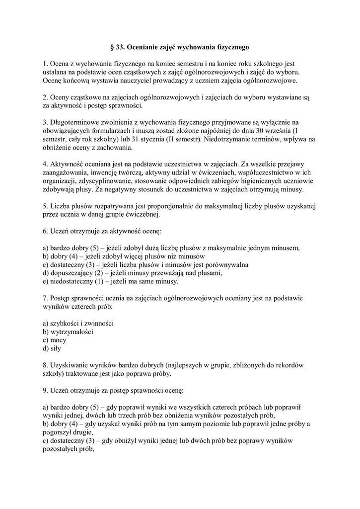 § 33. Ocenianie zajęć wychowania fizycznego 1. Ocena z