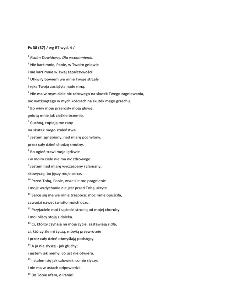 Ps 38 (37) / wg BT wyd. 4 / 1 Psalm Dawidowy. Dla wspomnienia. 2