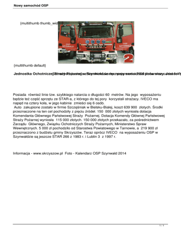 Informacja - www.skrzyszow.pl Foto - Kalendarz OSP Szynwałd 2014