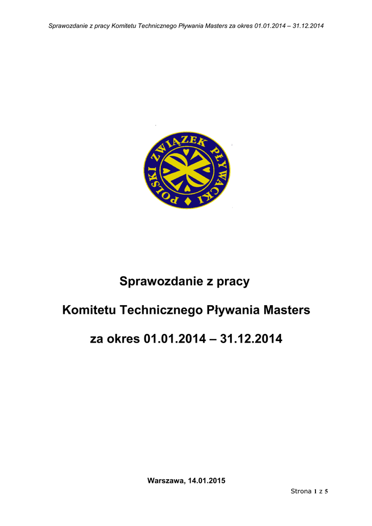 Sprawozdanie z pracy Komitetu Technicznego Pływania Masters za