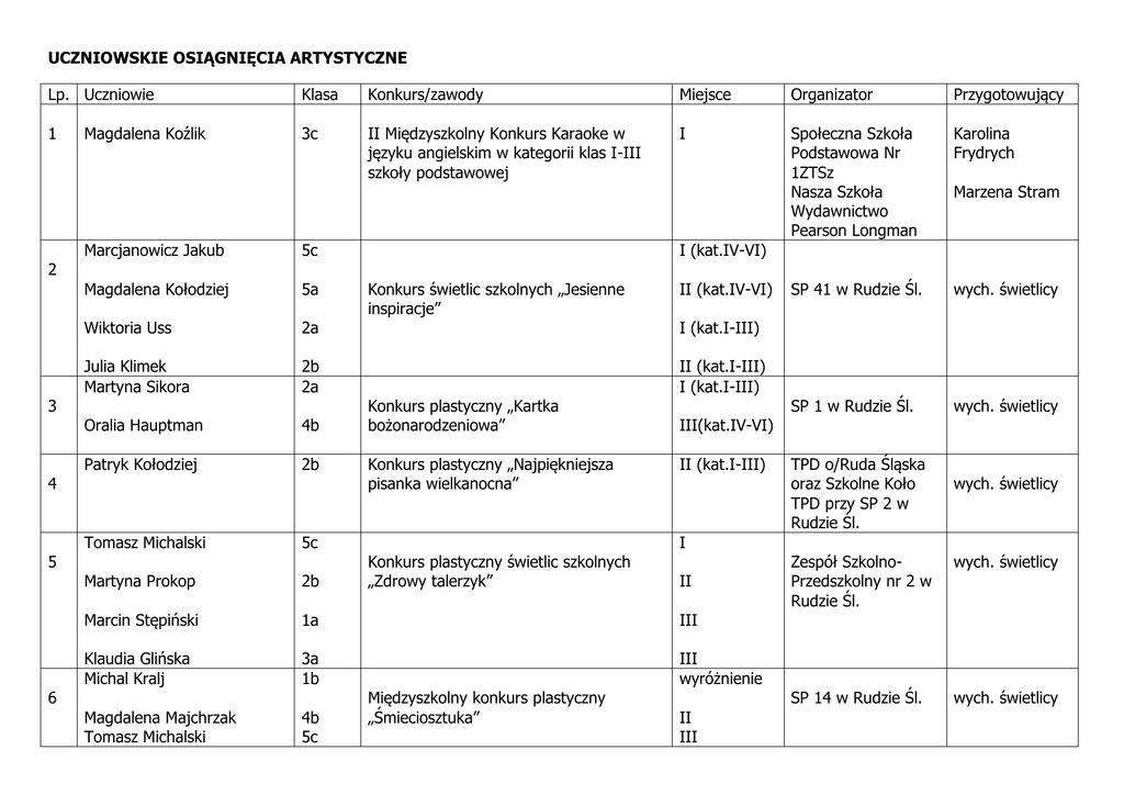 Osiągnięcia artystyczne - Szkoła Podstawowa nr 24